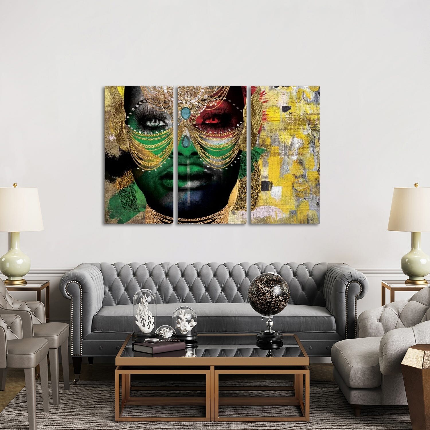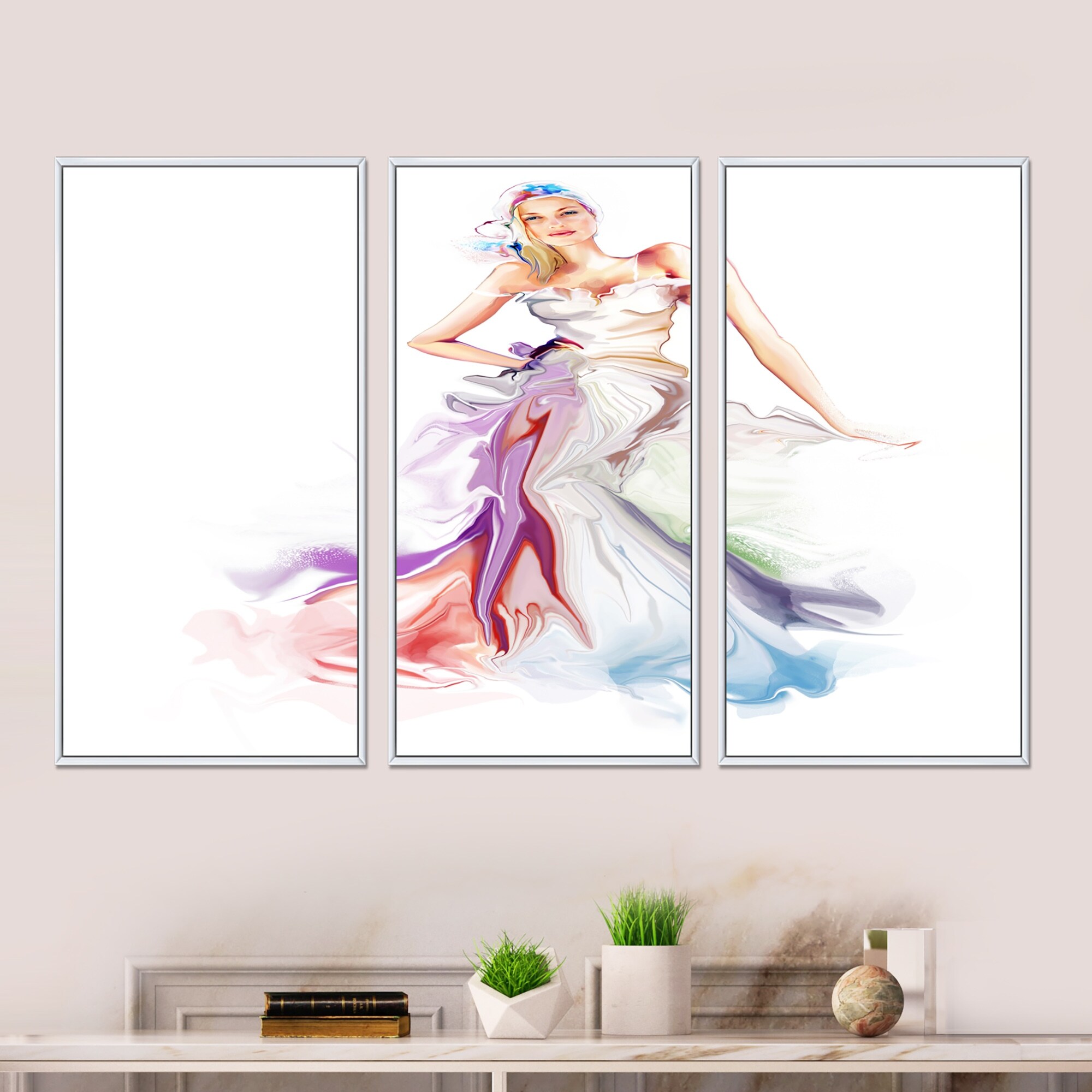 Designart "Beautiful Fashion Girl" Street Art Framed Canvas Wall Art Set of 3 - 4 Colors of Frames