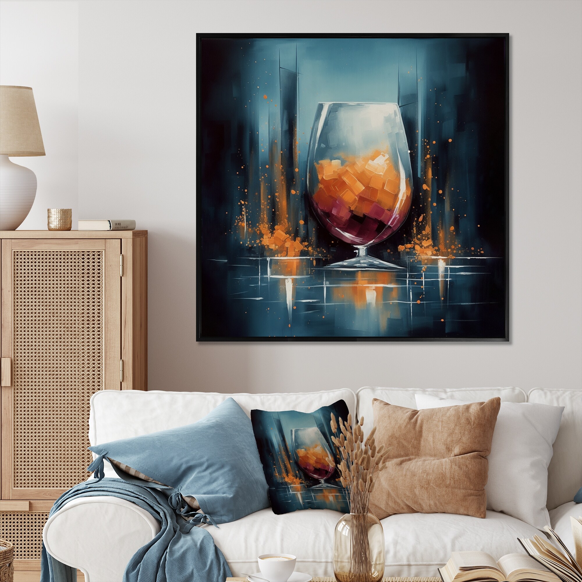 Designart "Glam Cognac Glass I" Fashion Framed Canvas Wall Art
