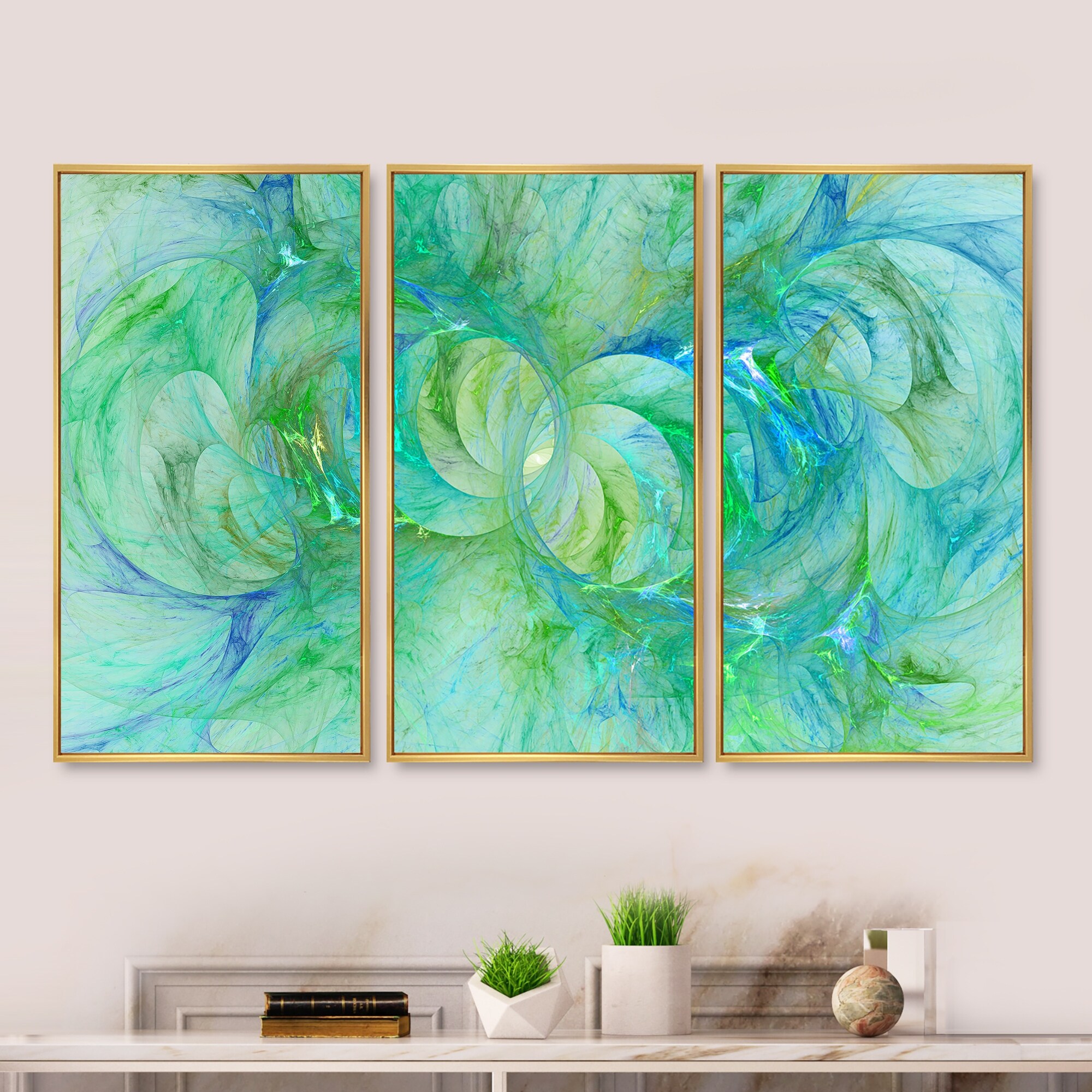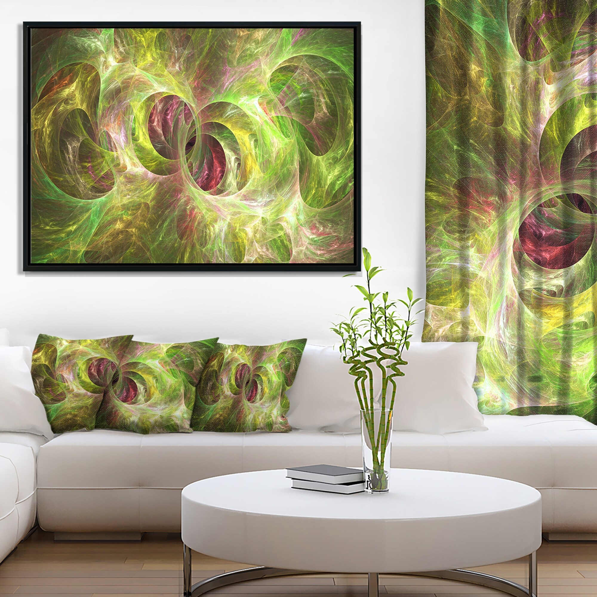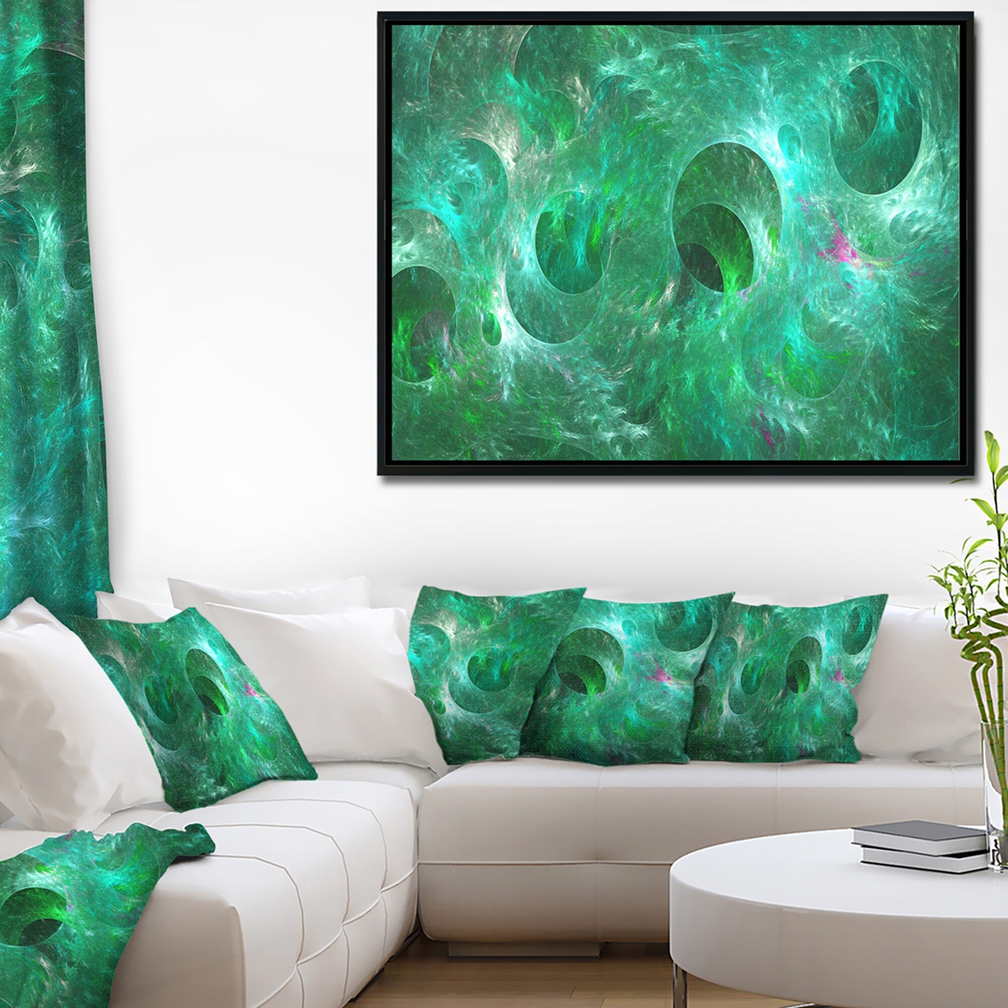 Designart "Green Fractal Glass Texture" Abstract Framed Canvas Art Print