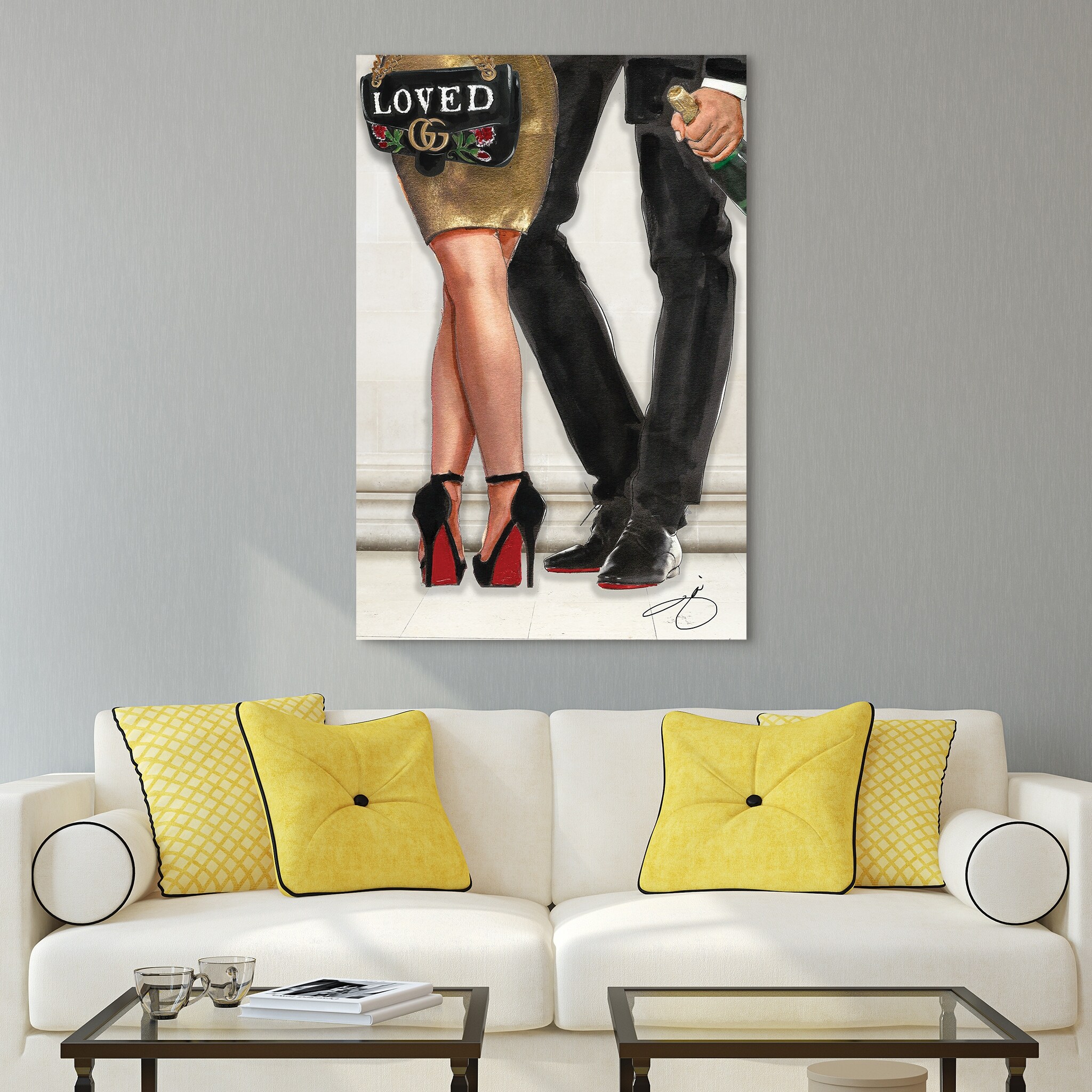 "J Fashion Gold look" Frameless Free Floating Reverse Printed Tempered Glass Wall Art