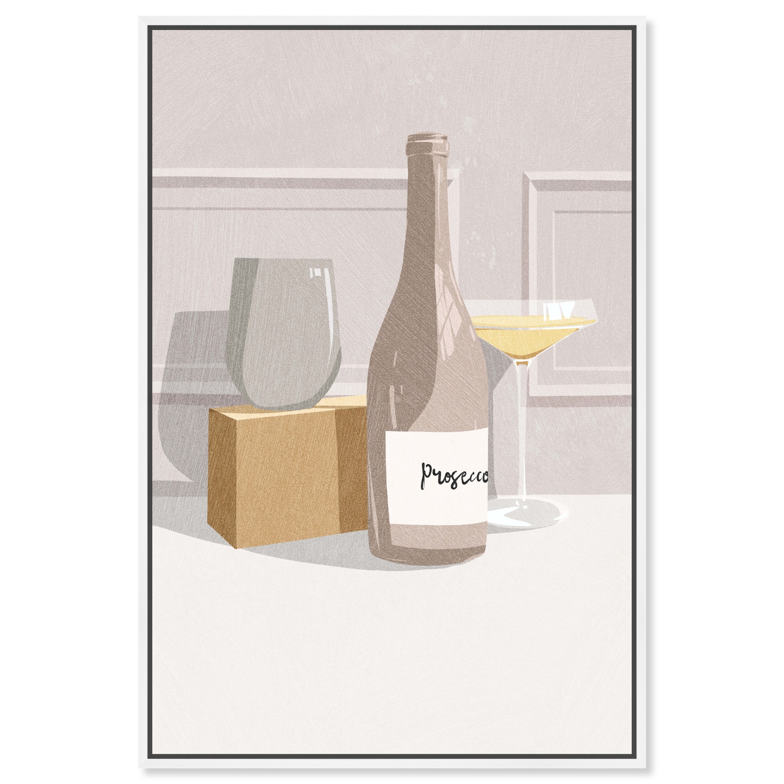 "Italian with love", Italian Glass and Bottle Modern White Framed Canvas Wall Art Print for Dining Room