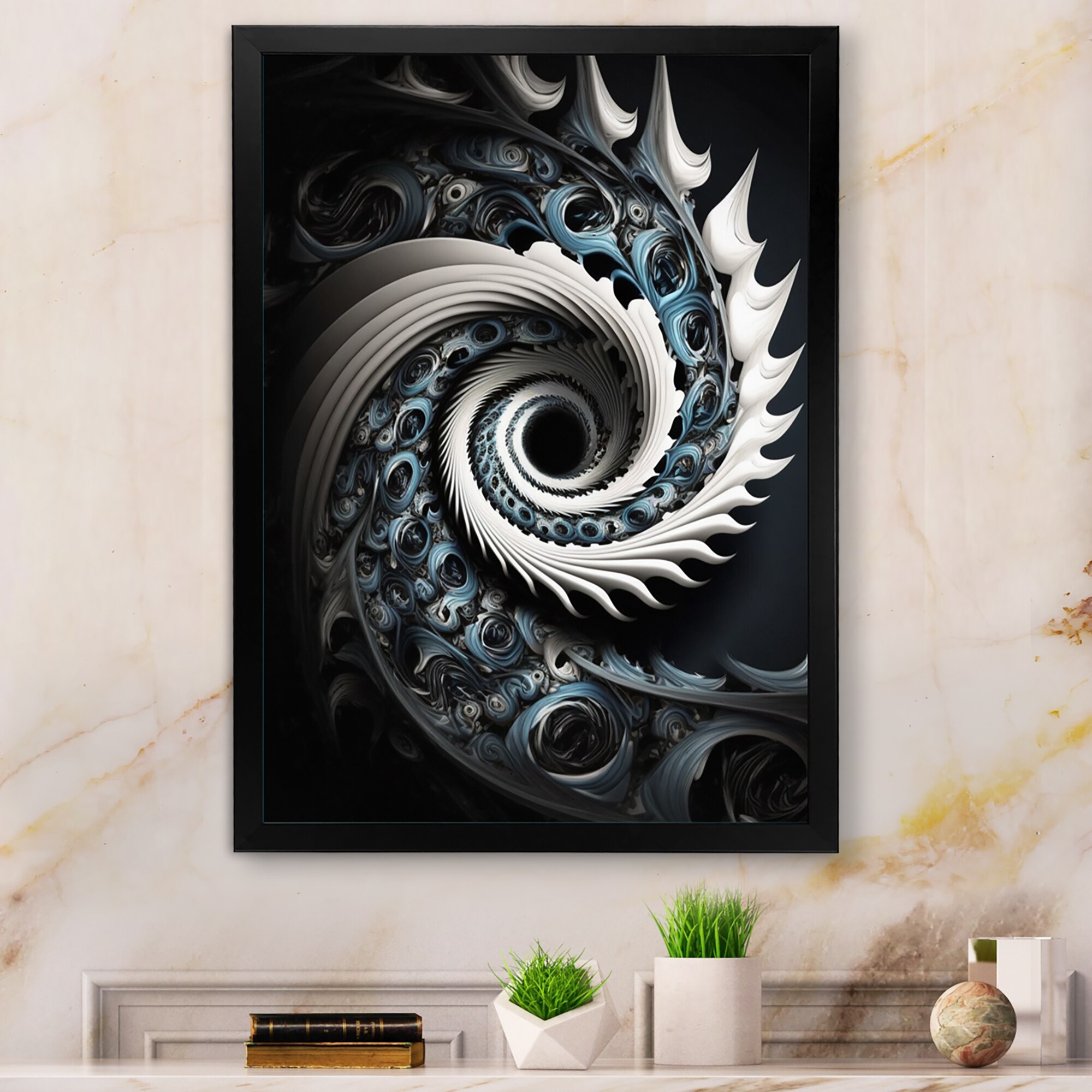Designart "Blue Fractal Ornamental Glass" Abstract Framed Canvas Art Print