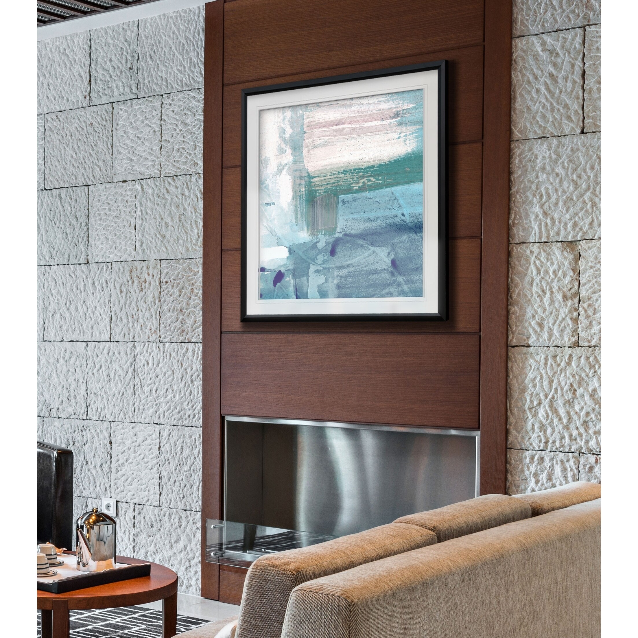 Sahara I -Custom Framed Print - blue, white, grey, yellow, green, silver, gold