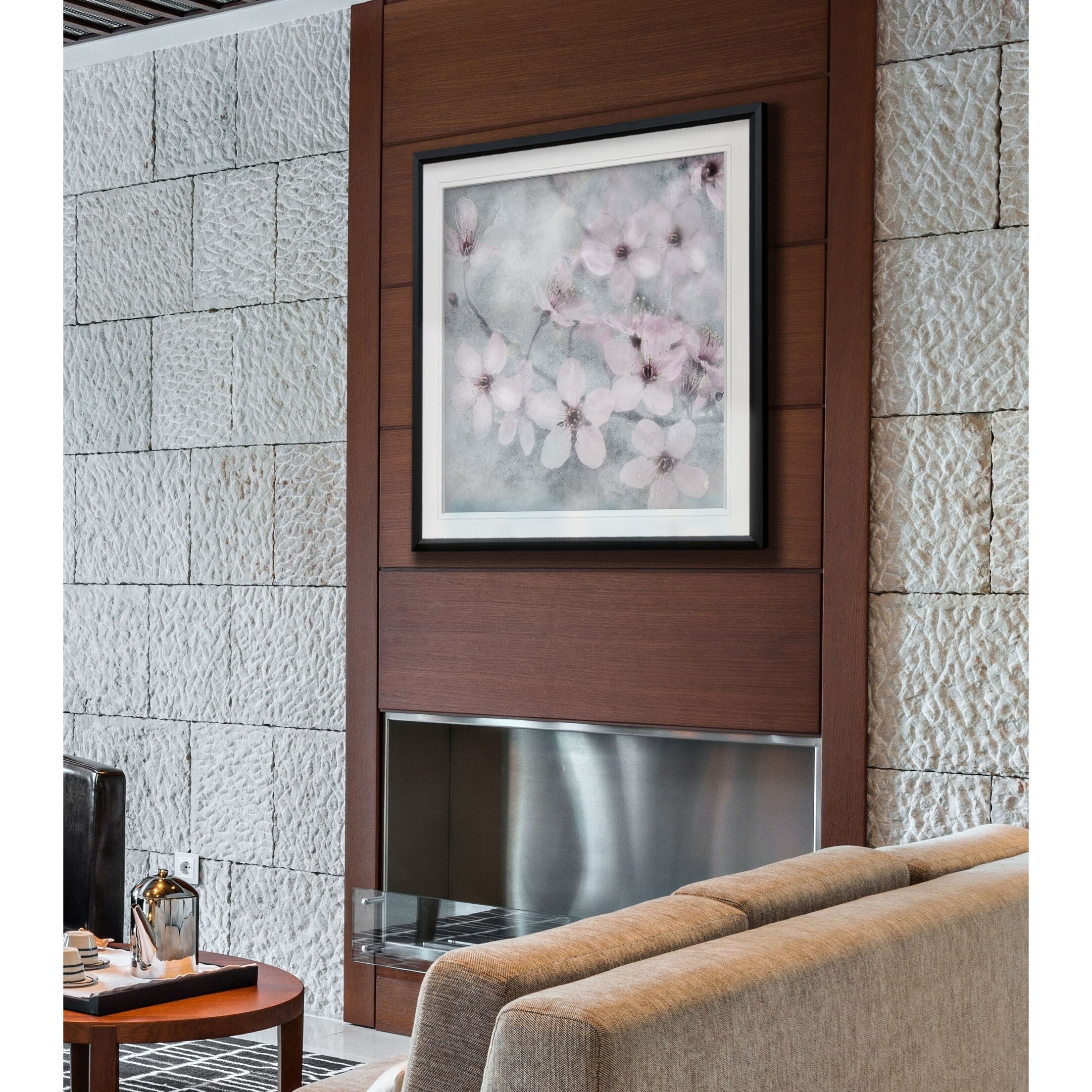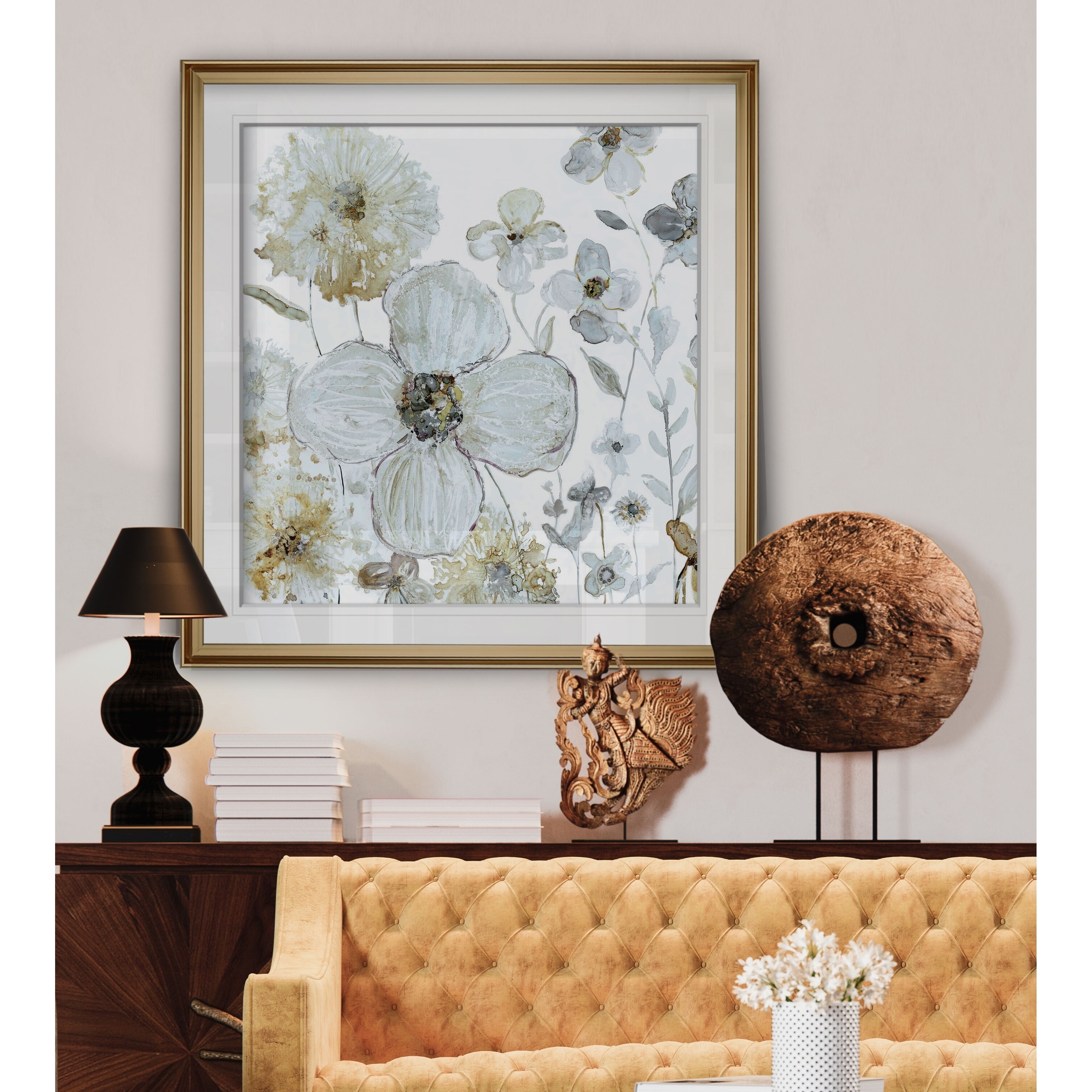 Dreamy Magnolia II -Custom Framed Print - blue, white, grey, yellow, green, silver, gold