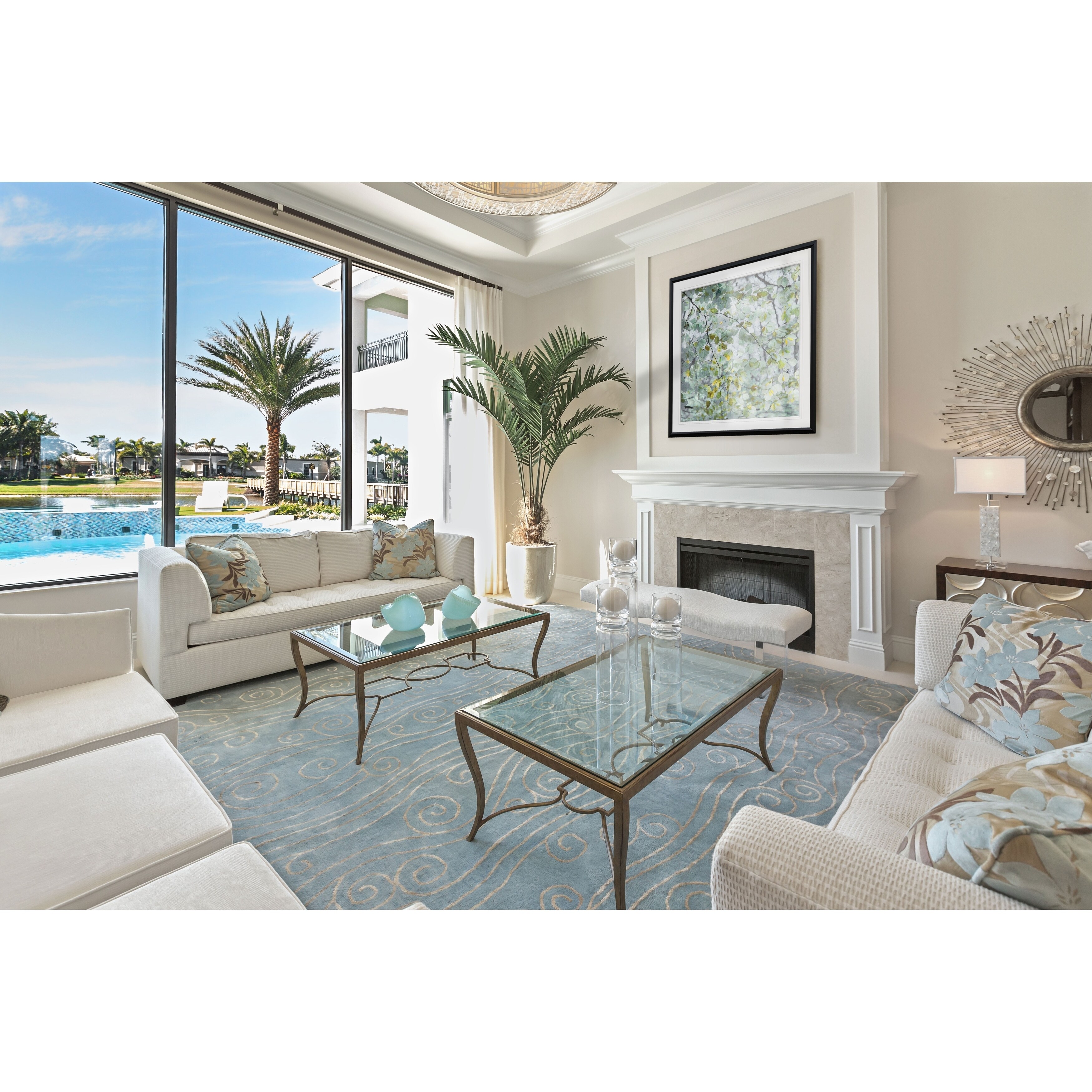 Tuscan Shore II -Custom Framed Print - blue, white, grey, yellow, green, silver, gold