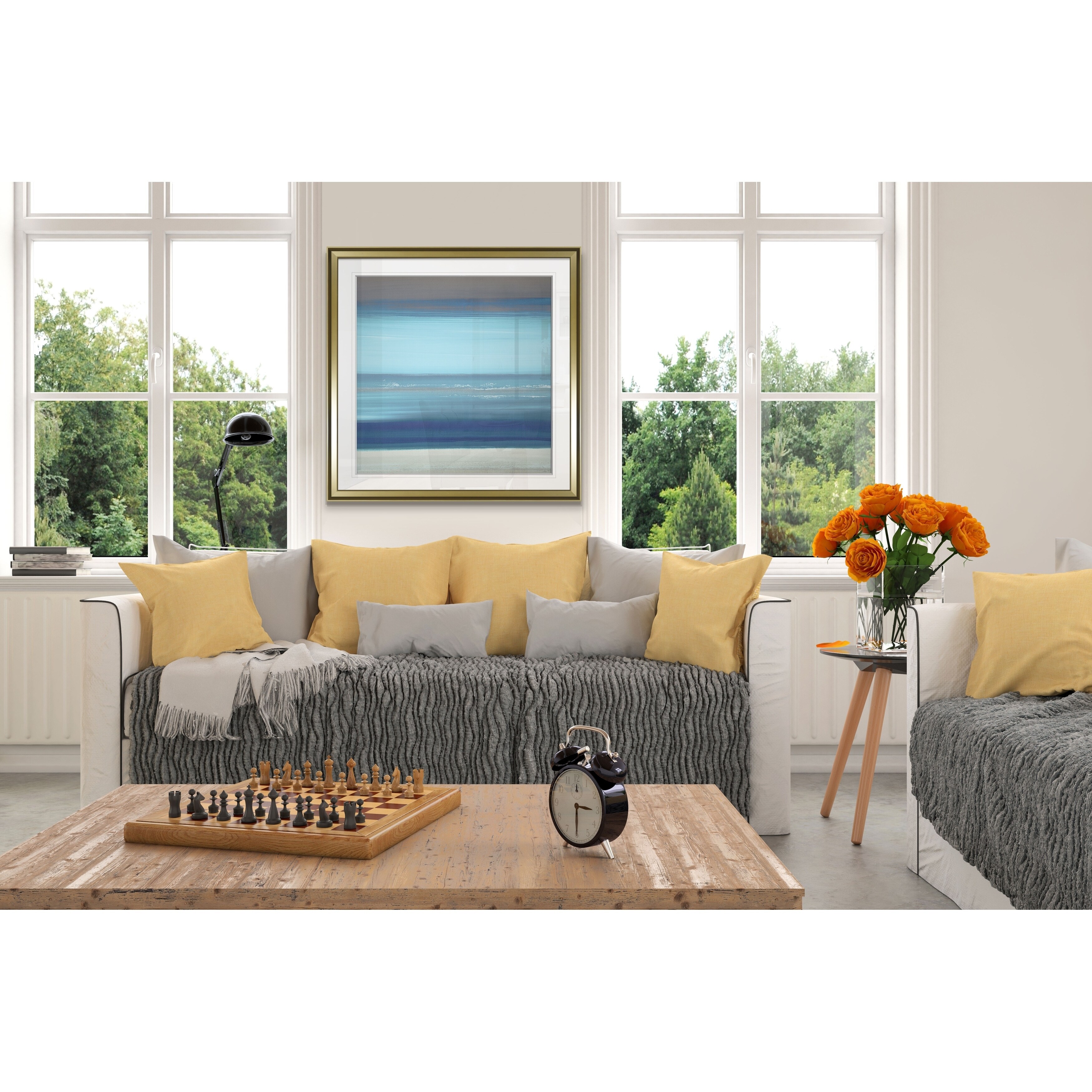 By the Sea II -Custom Framed Print - blue, white, grey, yellow, green, silver, gold
