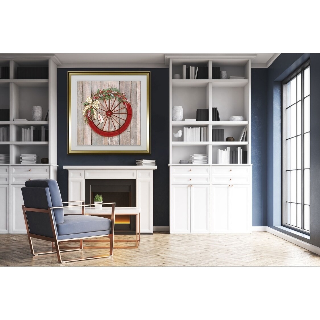 Christmas Wheel -Custom Framed Print - blue, white, grey, yellow, green, silver, gold