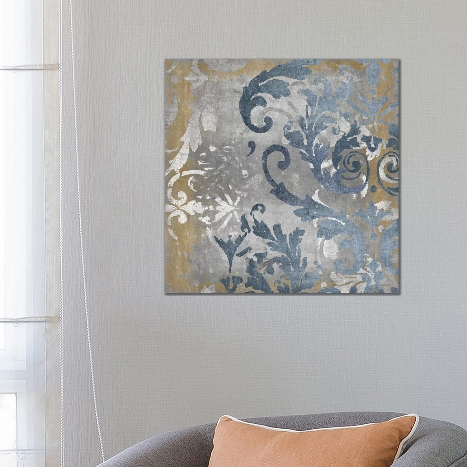 iCanvas "Damask in Silver and Gold II" by Ellie Roberts Canvas Print