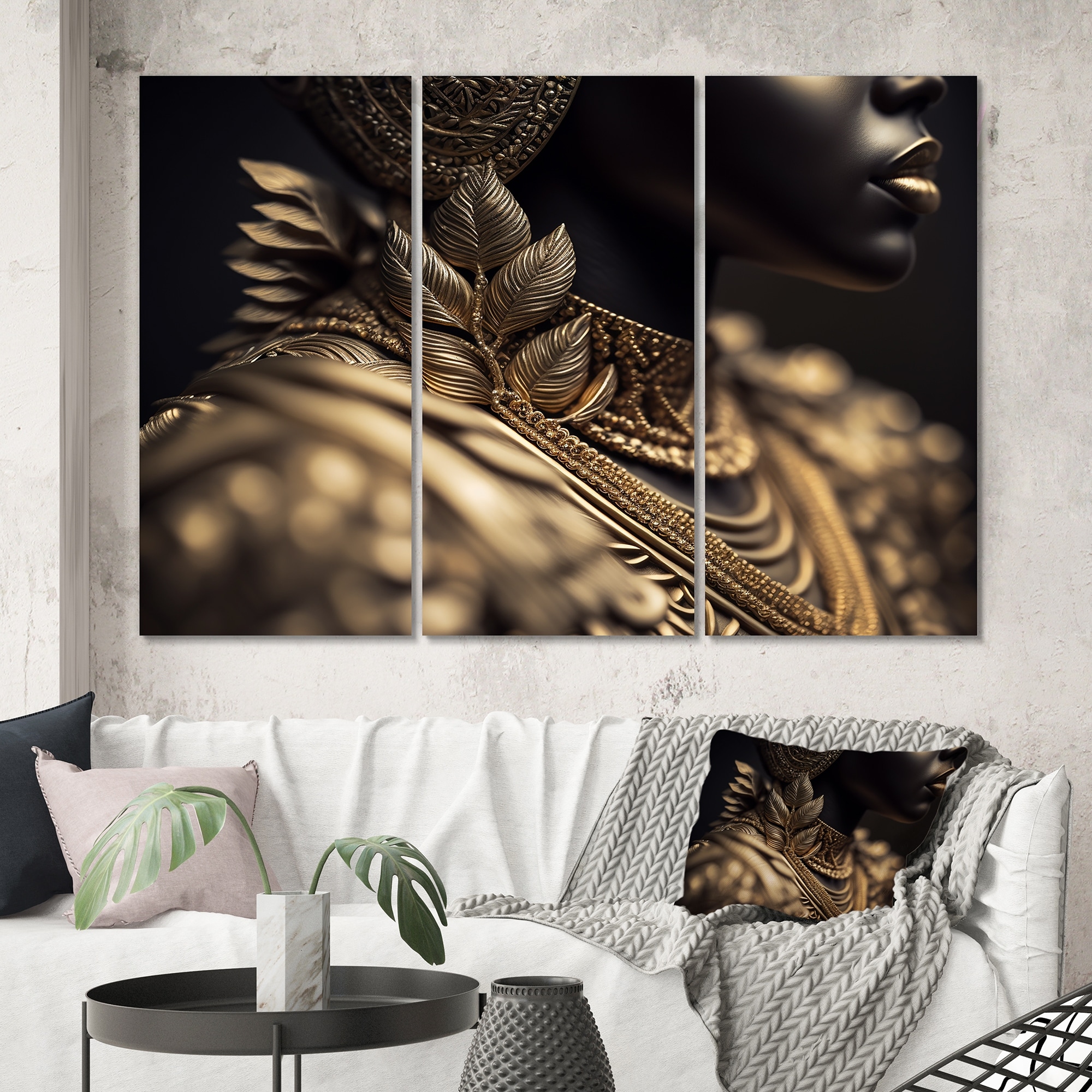 Designart "Vintage Silver And Gold Boho Accessories VI" Fashion Framed Canvas Wall Art Print - 3 Panels