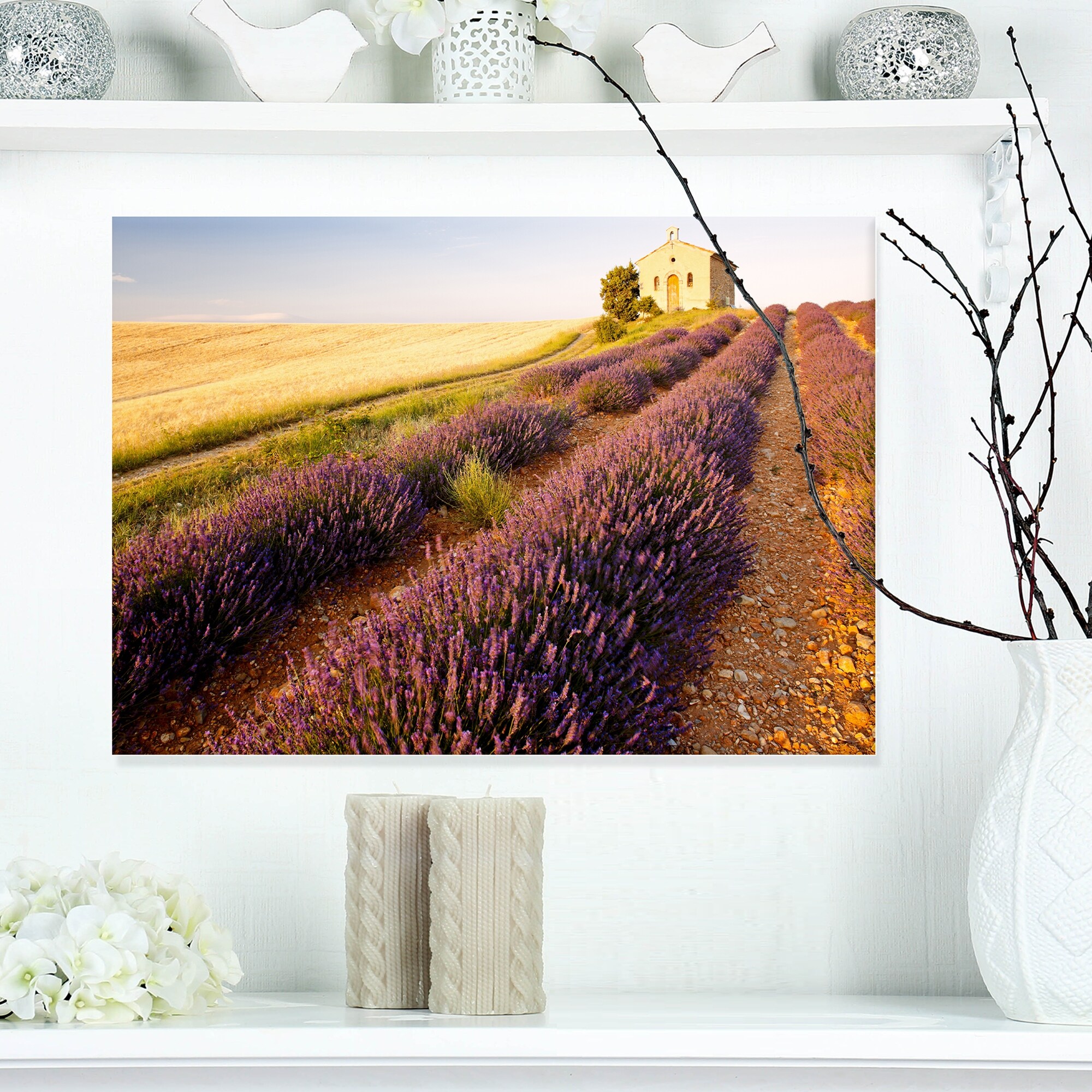Designart "Chapel with Lavender and Grain Field" Large Flower Canvas Wall Art