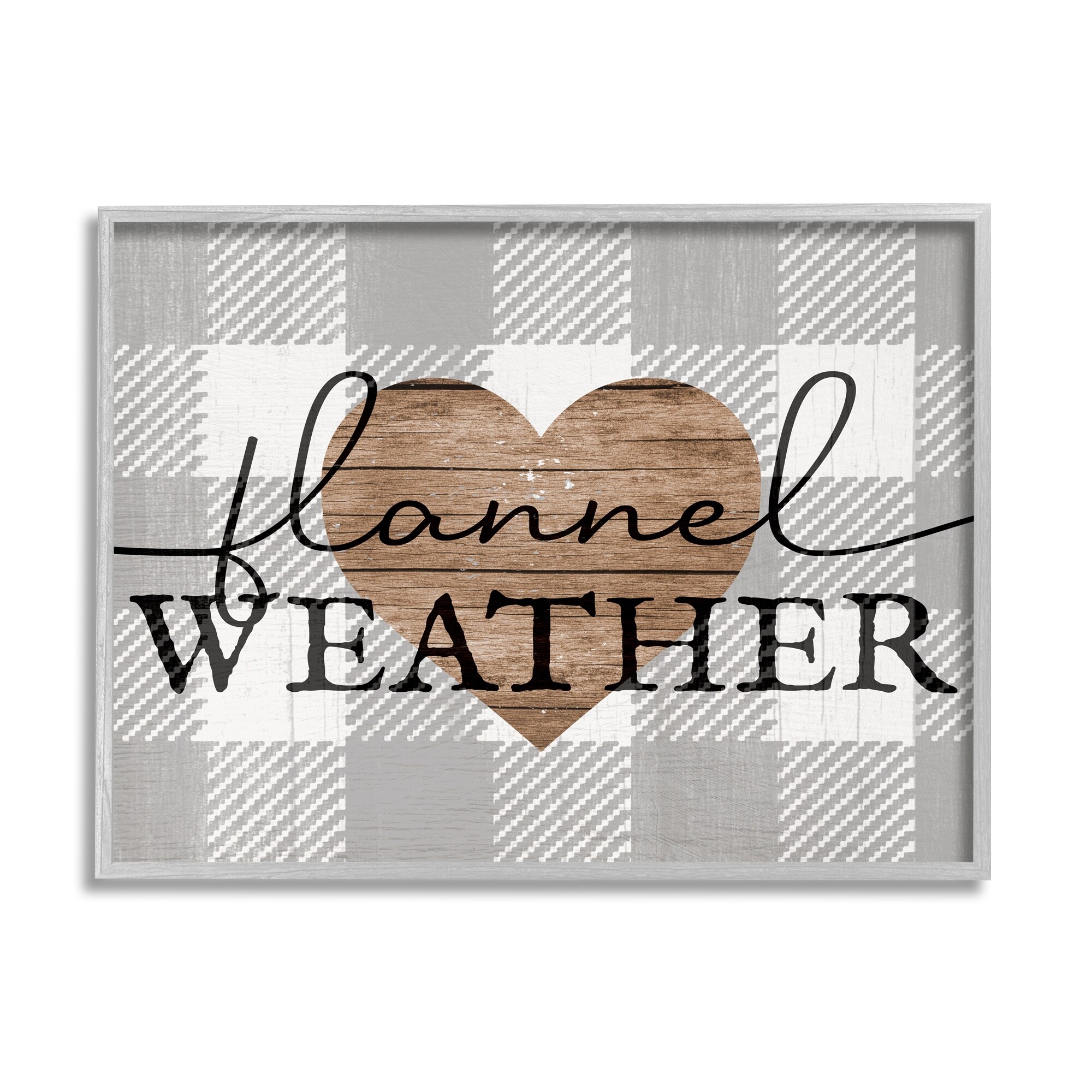 Stupell Industries Flannel Weather Phrase Grain Pattern Heart Checkered Plaid Framed Wall Art - Grey