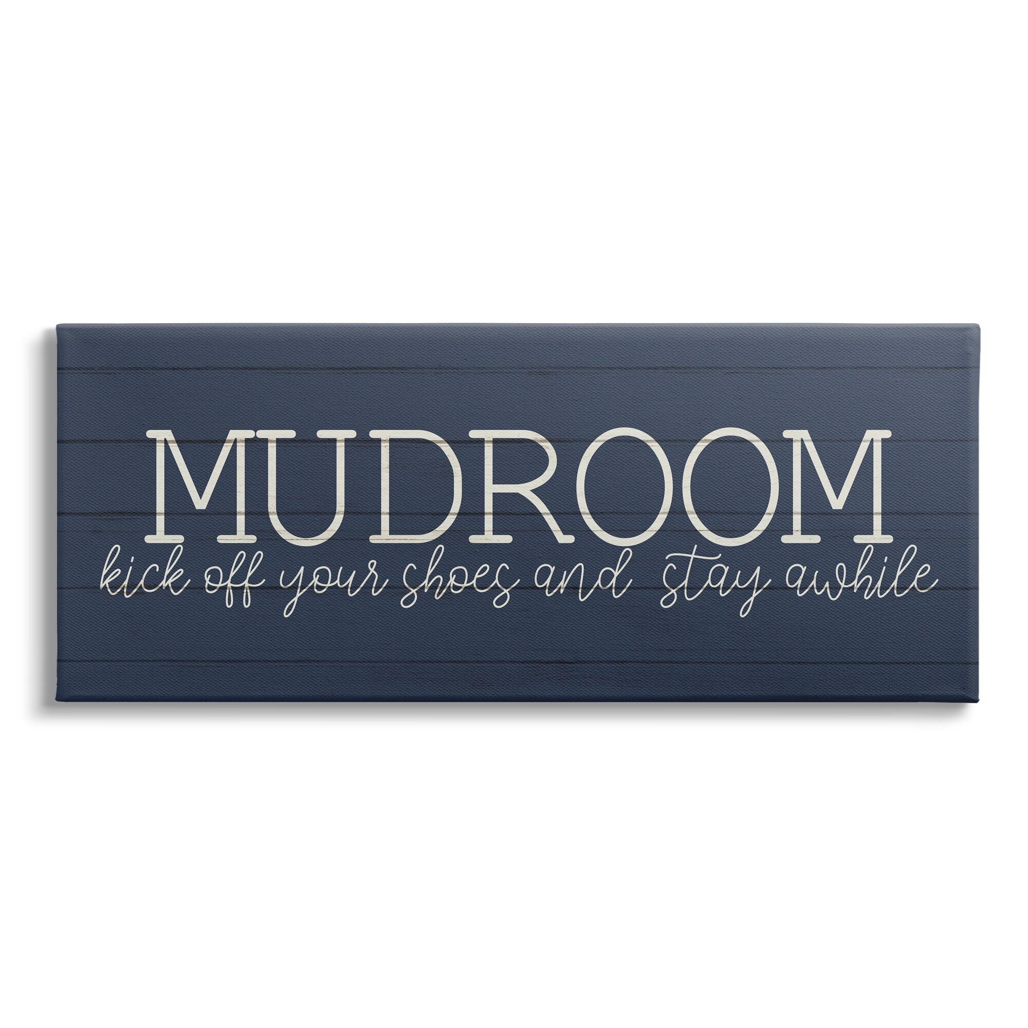Stupell Mudroom Kick Off Shoes Phrase Rustic Grain Pattern Canvas Wall Art - Blue