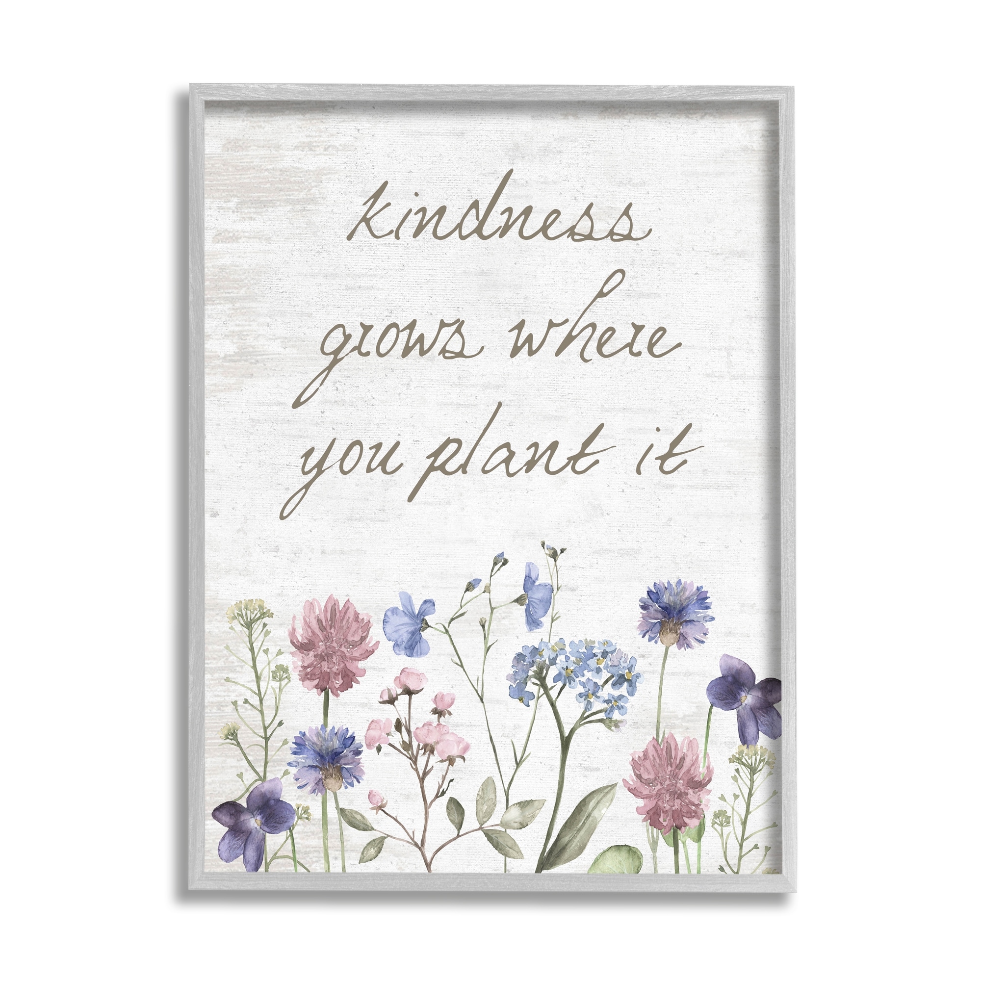 Stupell Kindness Grows Blooming Florals Rustic Grain Pattern Framed Wall Art, Design by Lettered and Lined - Off-White