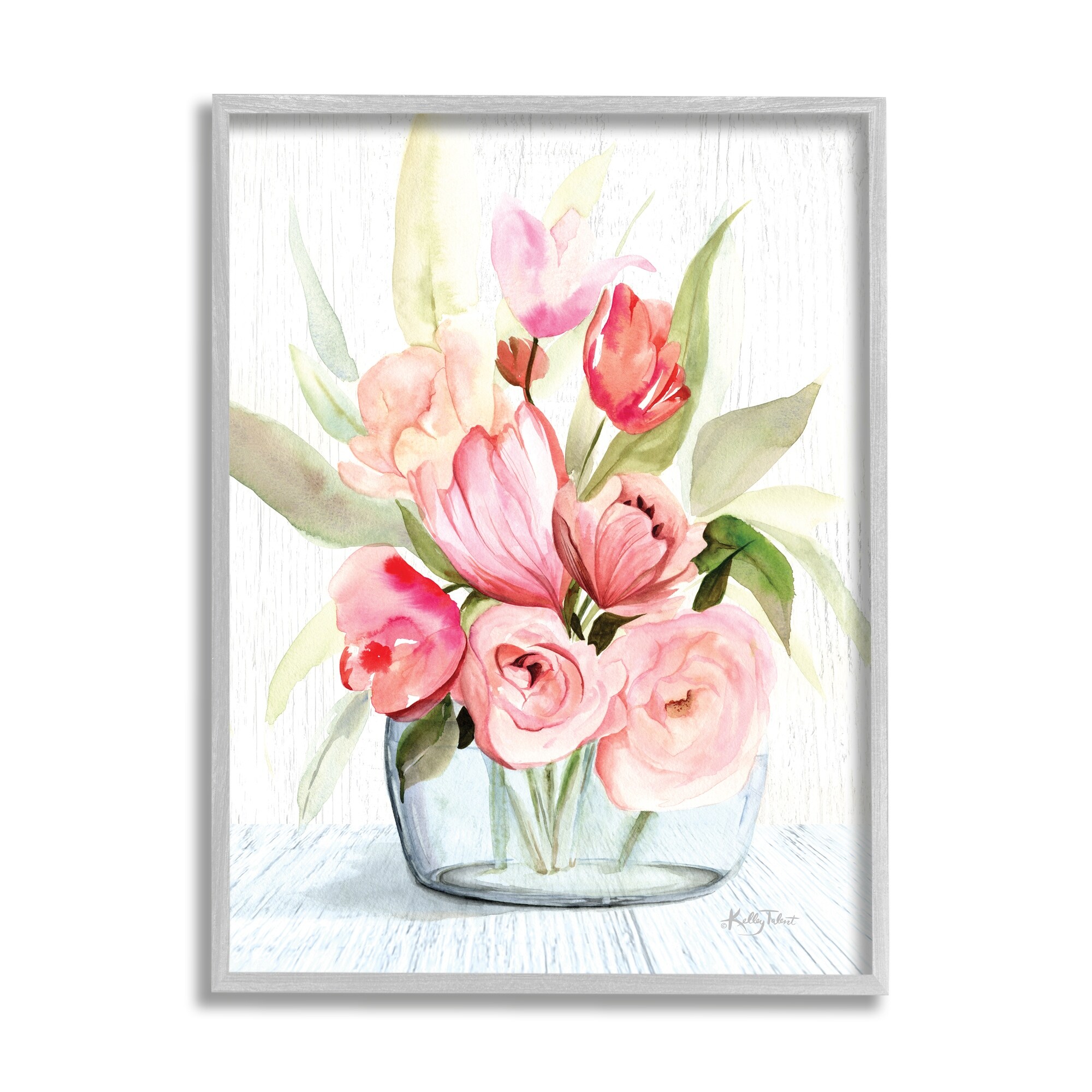 Stupell Pink Assorted Flower Bouquet Vase Grain Pattern Design Framed Wall Art