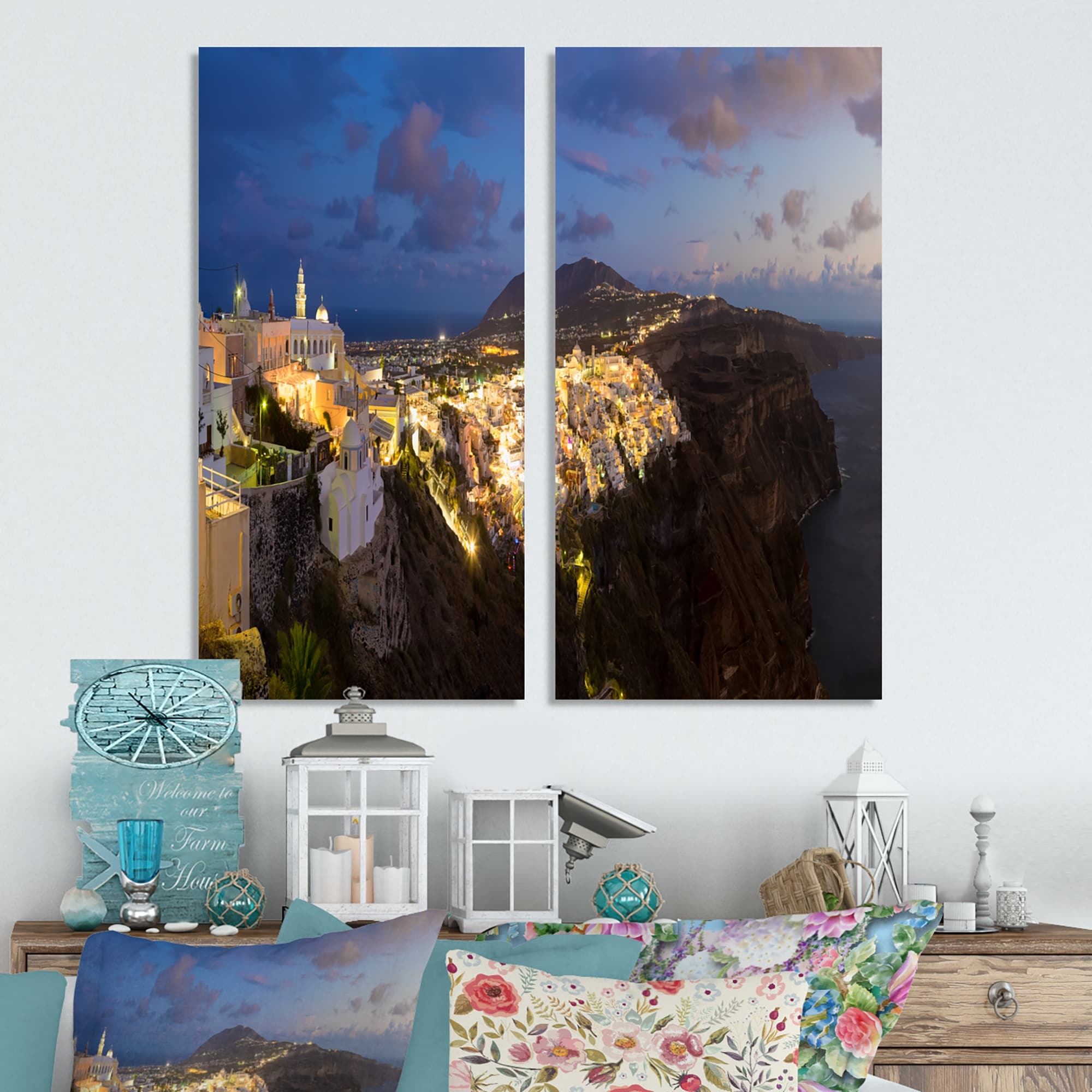 Designart "Thira Santorini Greece Panorama" Landscape Canvas Wall Art Print 2 Piece Set