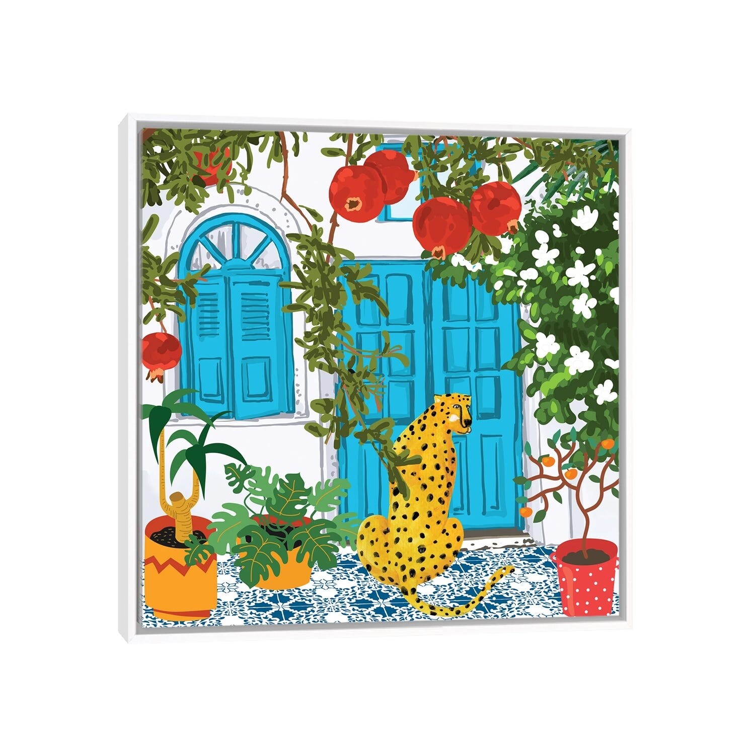 iCanvas "Cheetah Home, Morocco Architecture Illustration, Greece Cats Tropical Urban Jungle" by 83 Oranges Framed Canvas Print