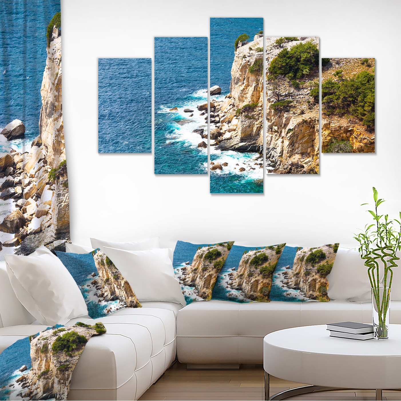Designart "Rocky Cliff Coast Thassos Greece" Extra Large Seashore Canvas Art