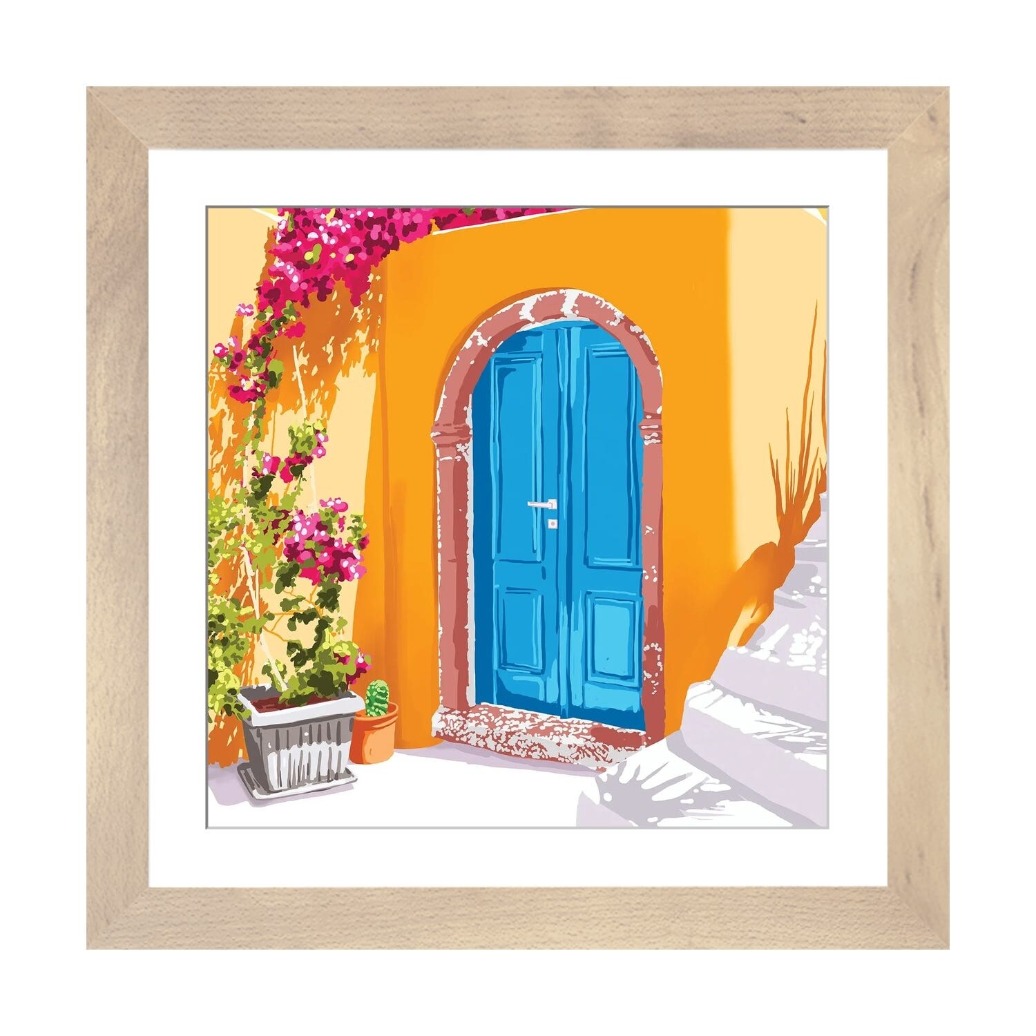 iCanvas "Sunny Morocco, Summer Architecture Greece Travel Painting, Boungainvillea Tropical" by 83 Oranges Framed Canvas Print