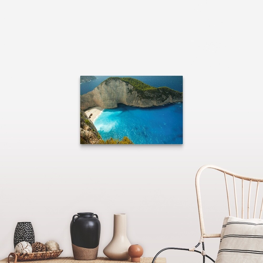 "Aerial view of shipwreck bay, Zakynthos, Ionian Islands, Greece" Canvas Wall Art