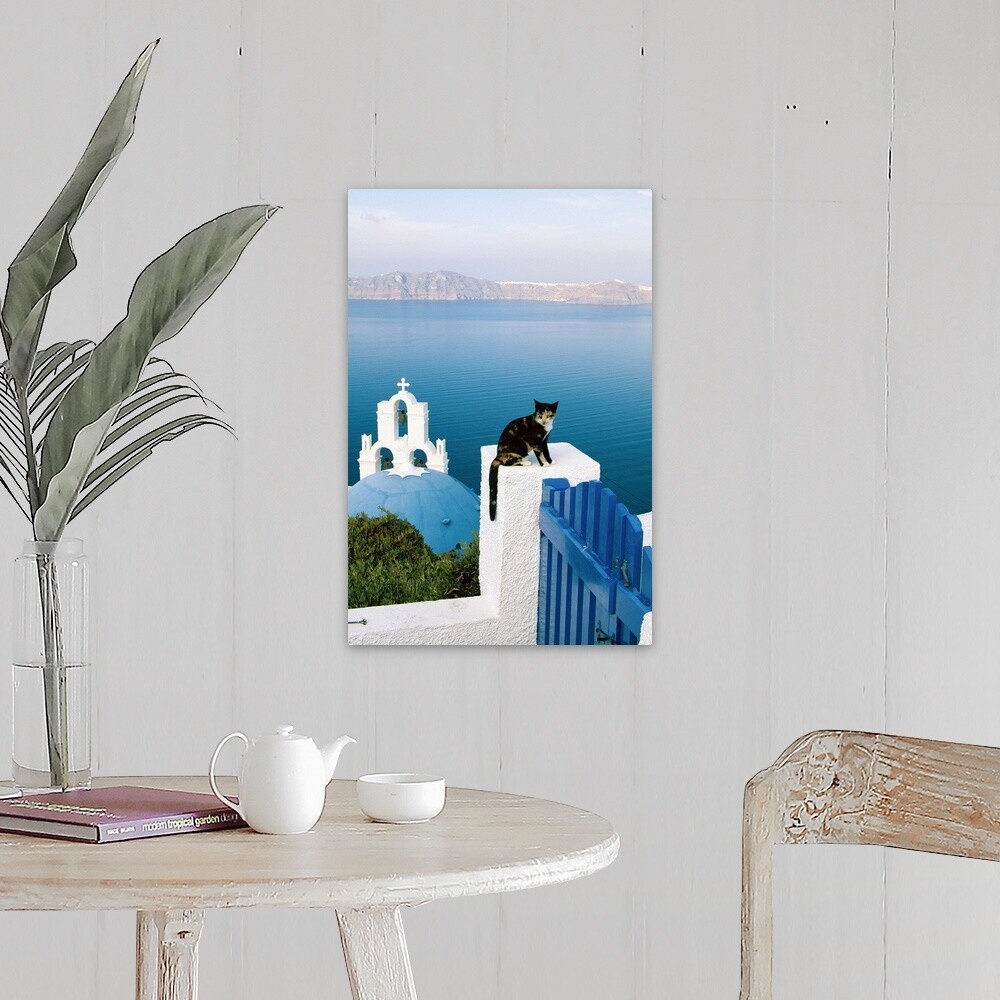 "A cat resting on a gate in Santorini, Greece" Canvas Wall Art