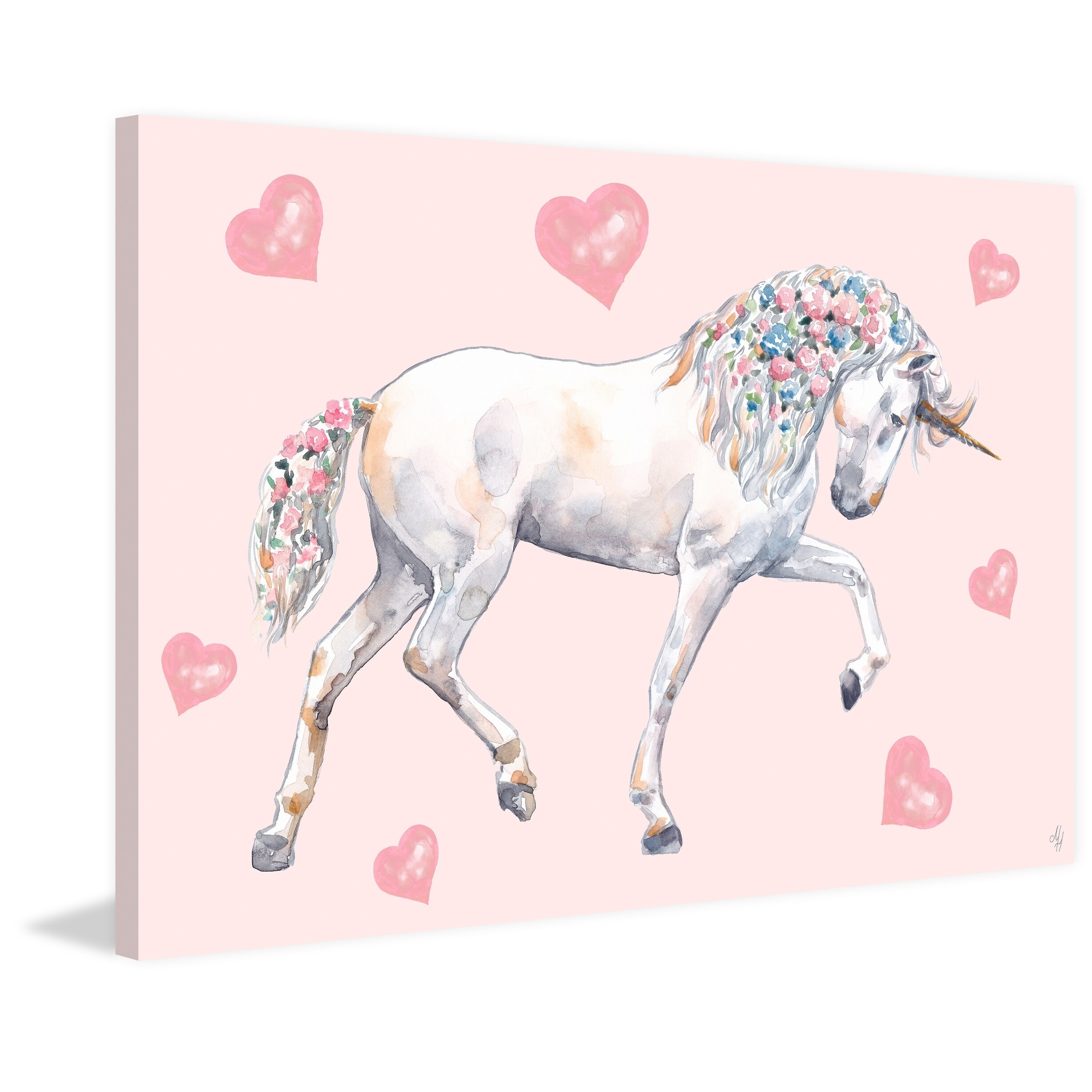 Marmont Hill - Handmade Cute Floral-haired Unicorn Print on Wrapped Canvas