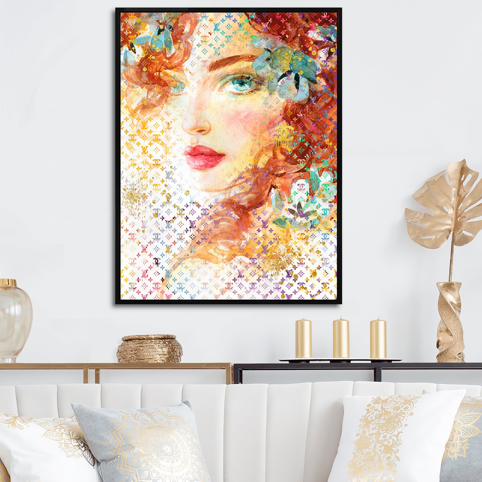 Designart "Luxurious Red Haired Woman II" Fashion Framed Canvas Art Print