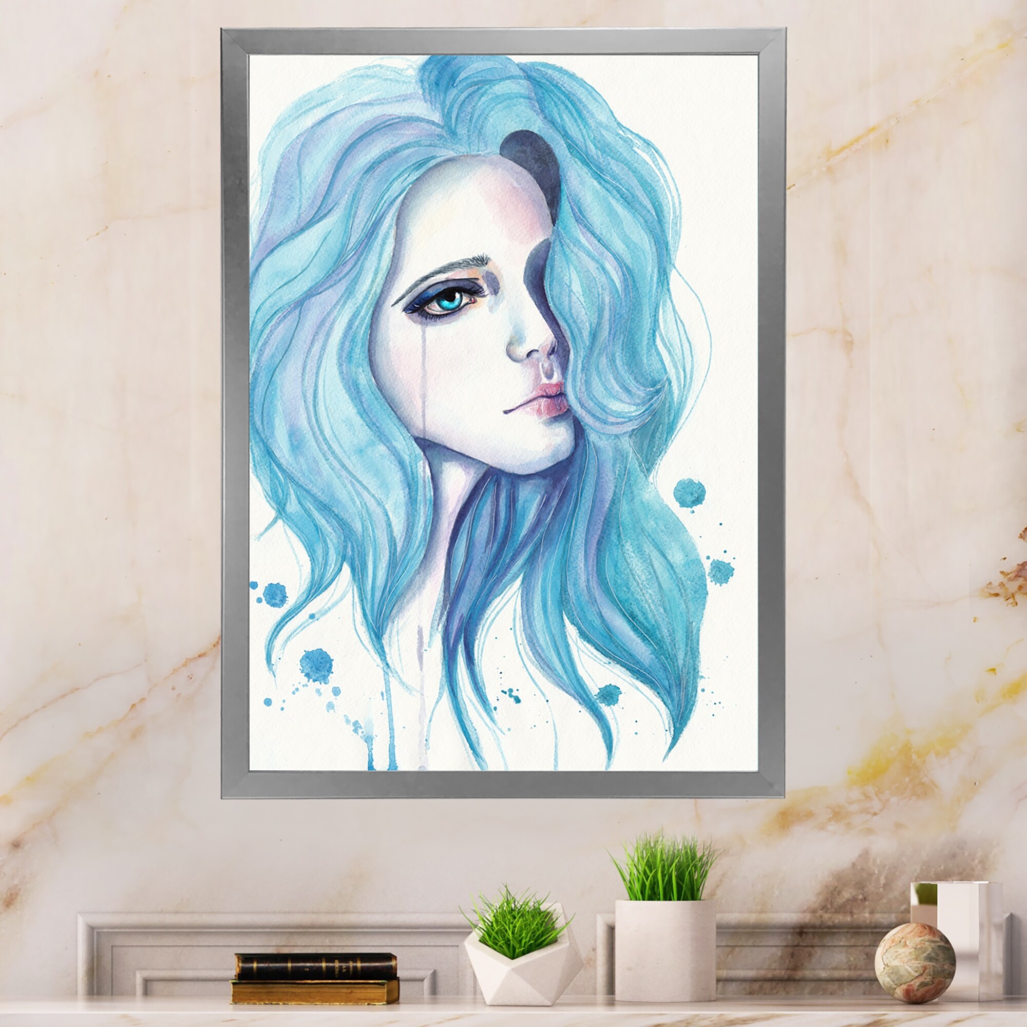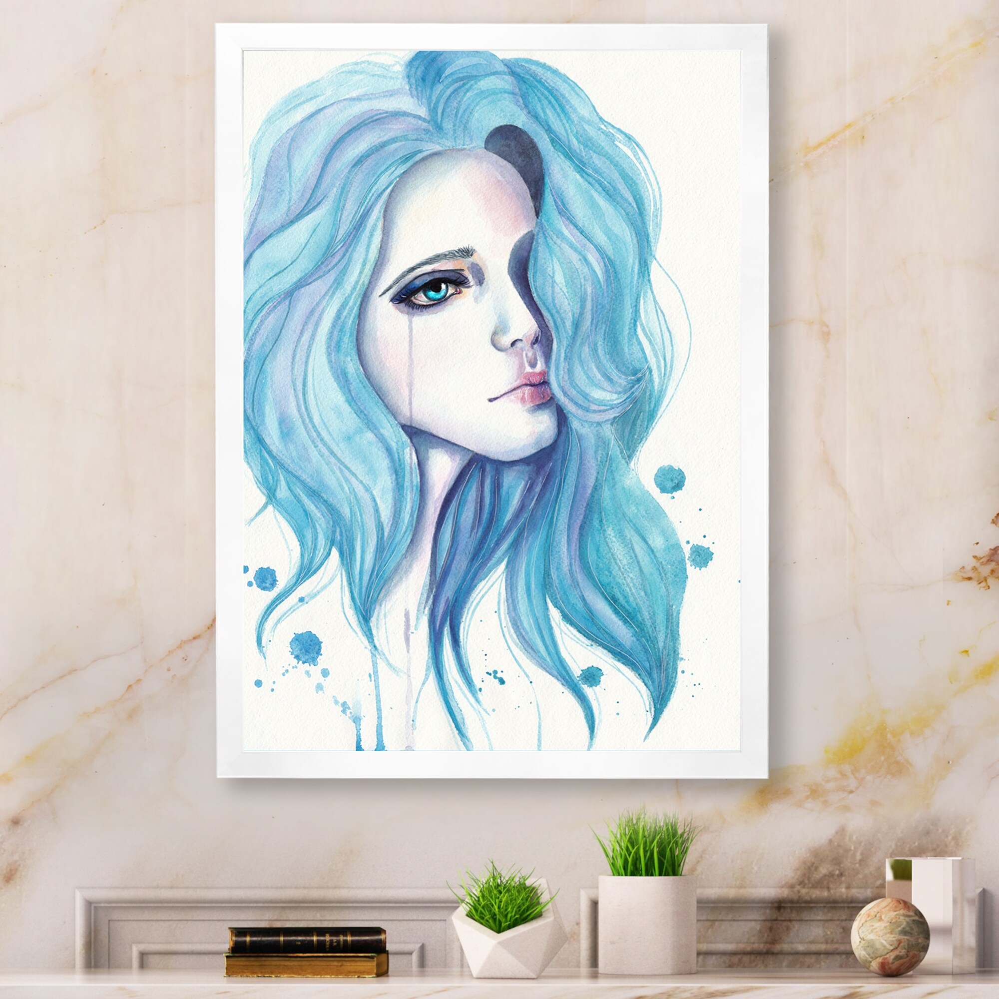 Designart "Girl Crying With Blue Hair" Glam Framed Wall Art