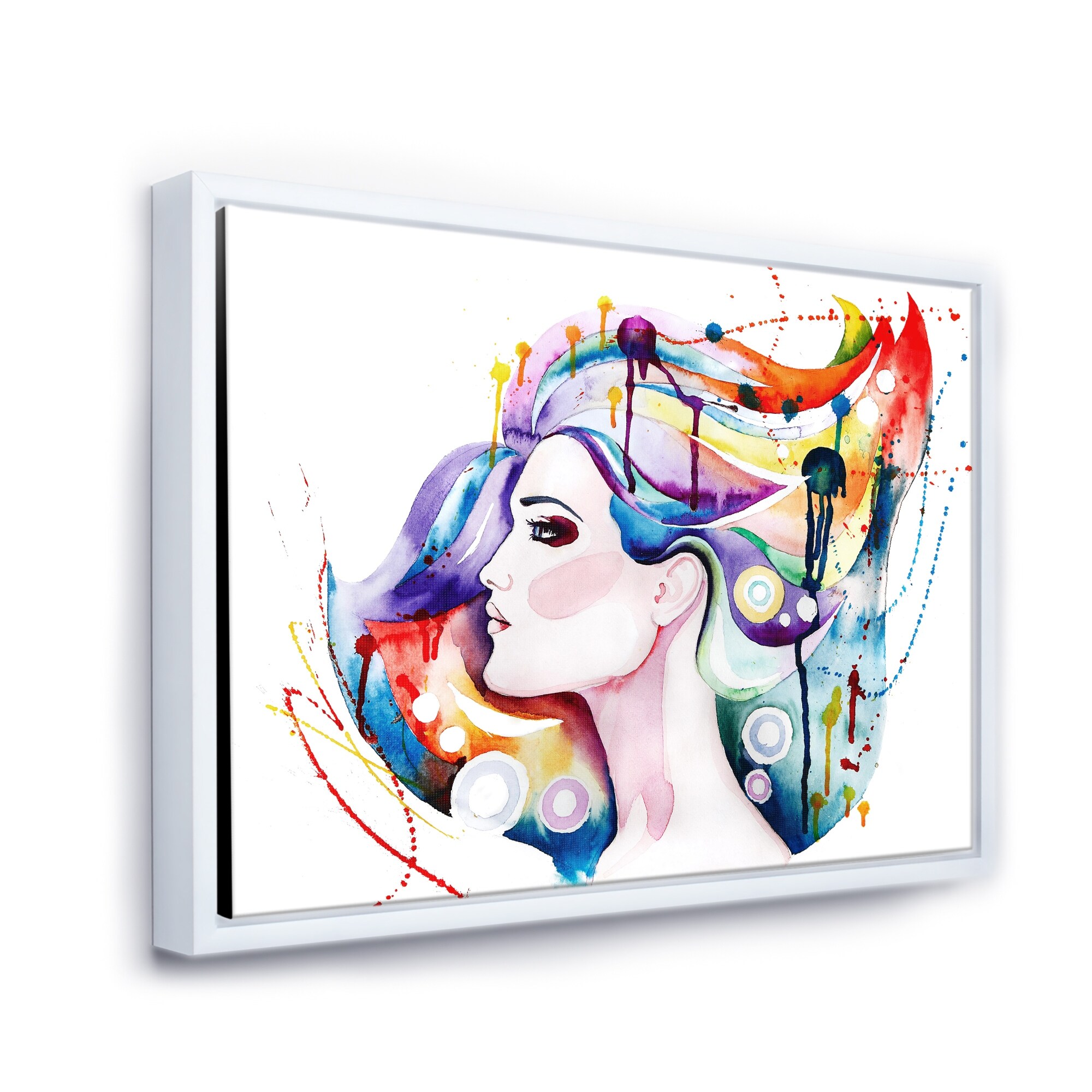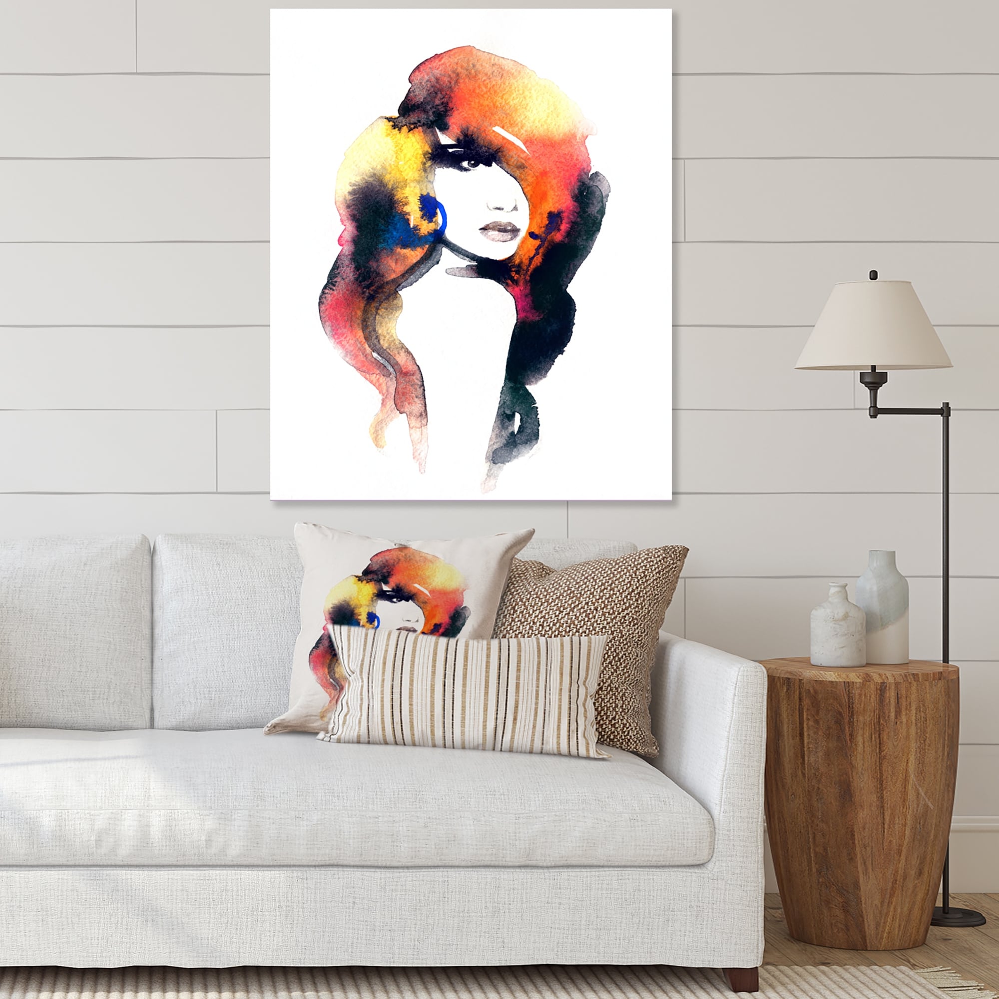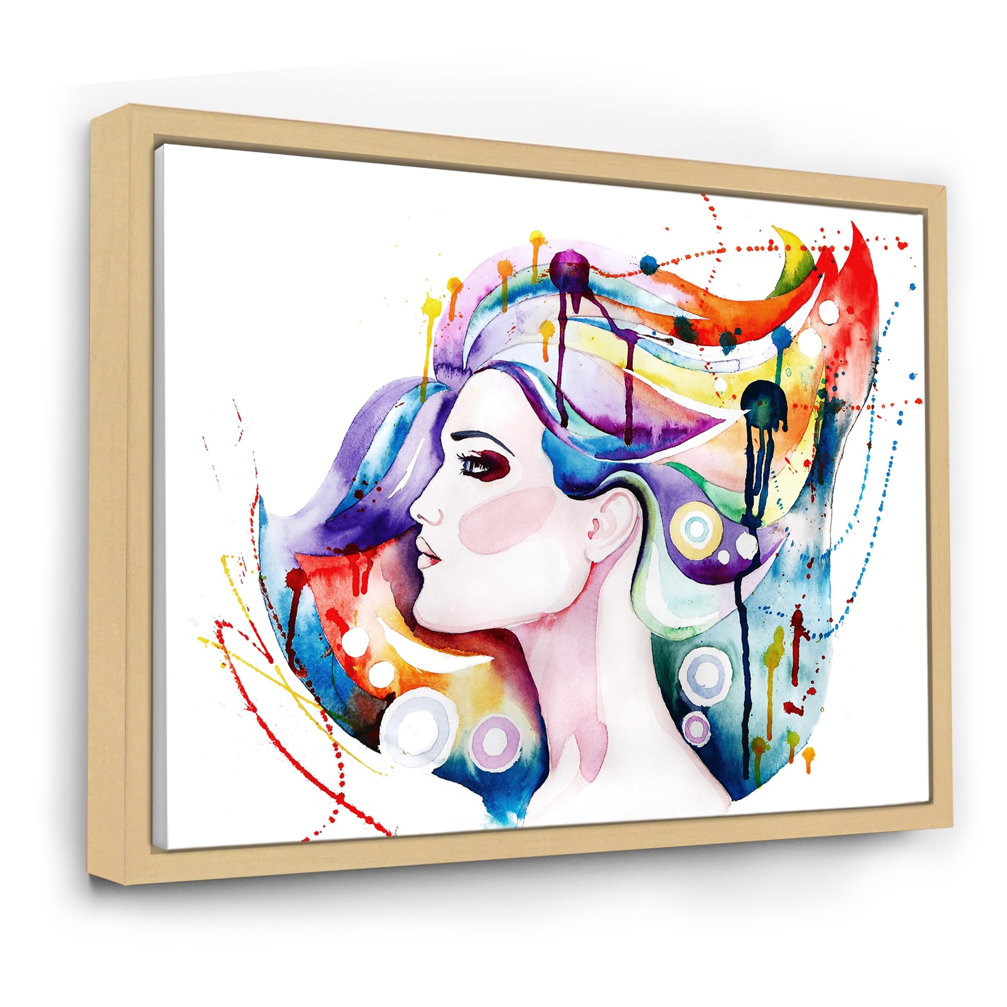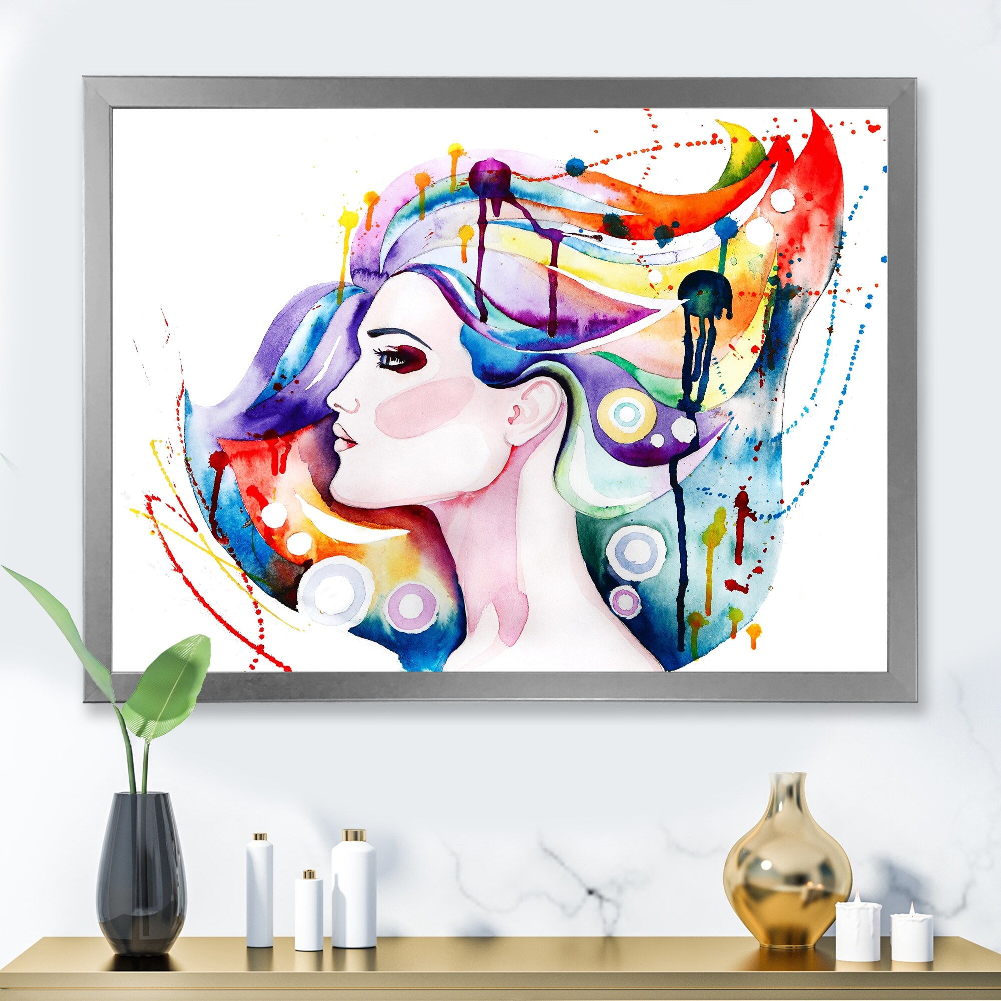 Designart "Portrait Of a Beautiful Woman With Vibrant Hair" Glam Canvas Wall Art Print