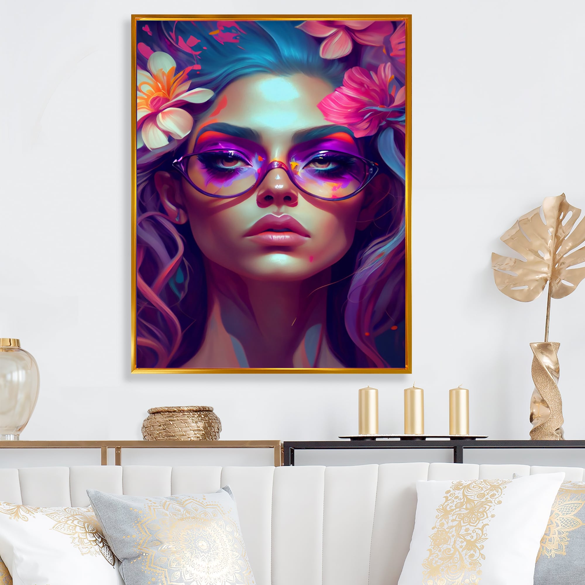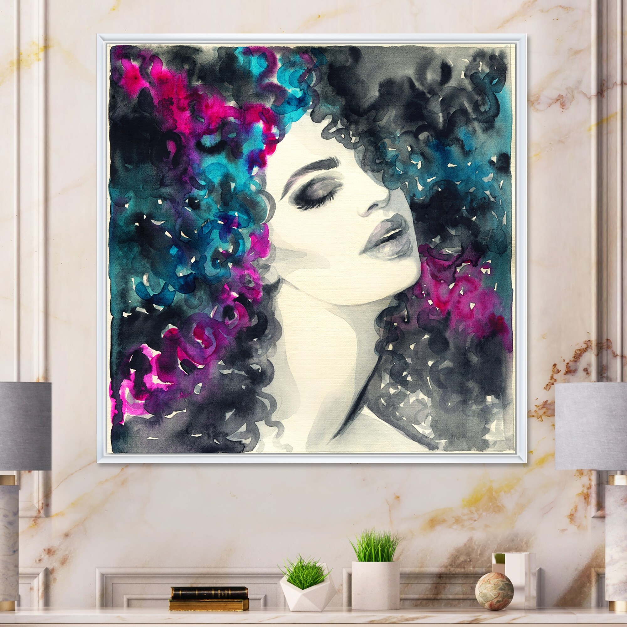 Designart "Portrait Of a Woman With Glorious Blue Hair II" Glam Framed Canvas Wall Art