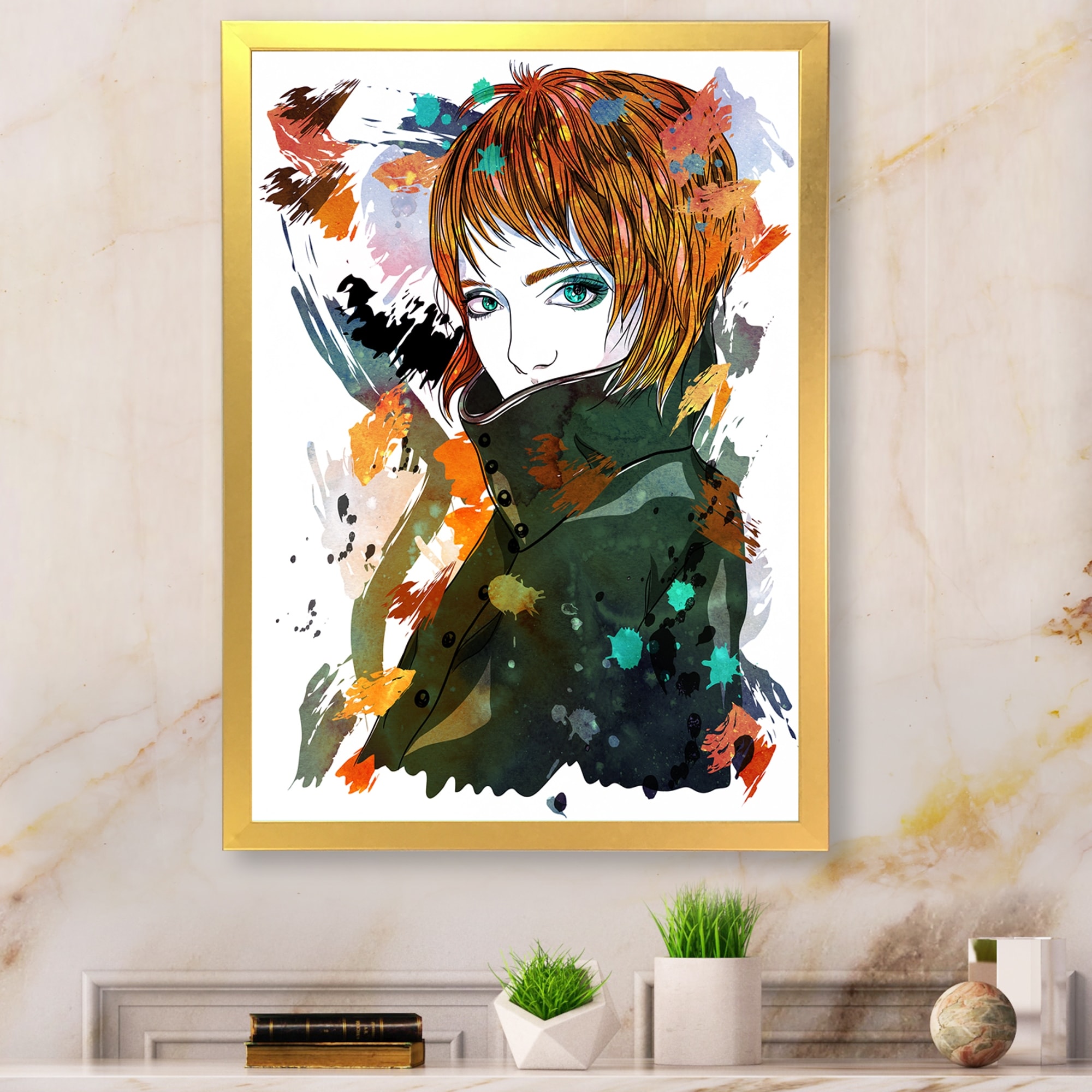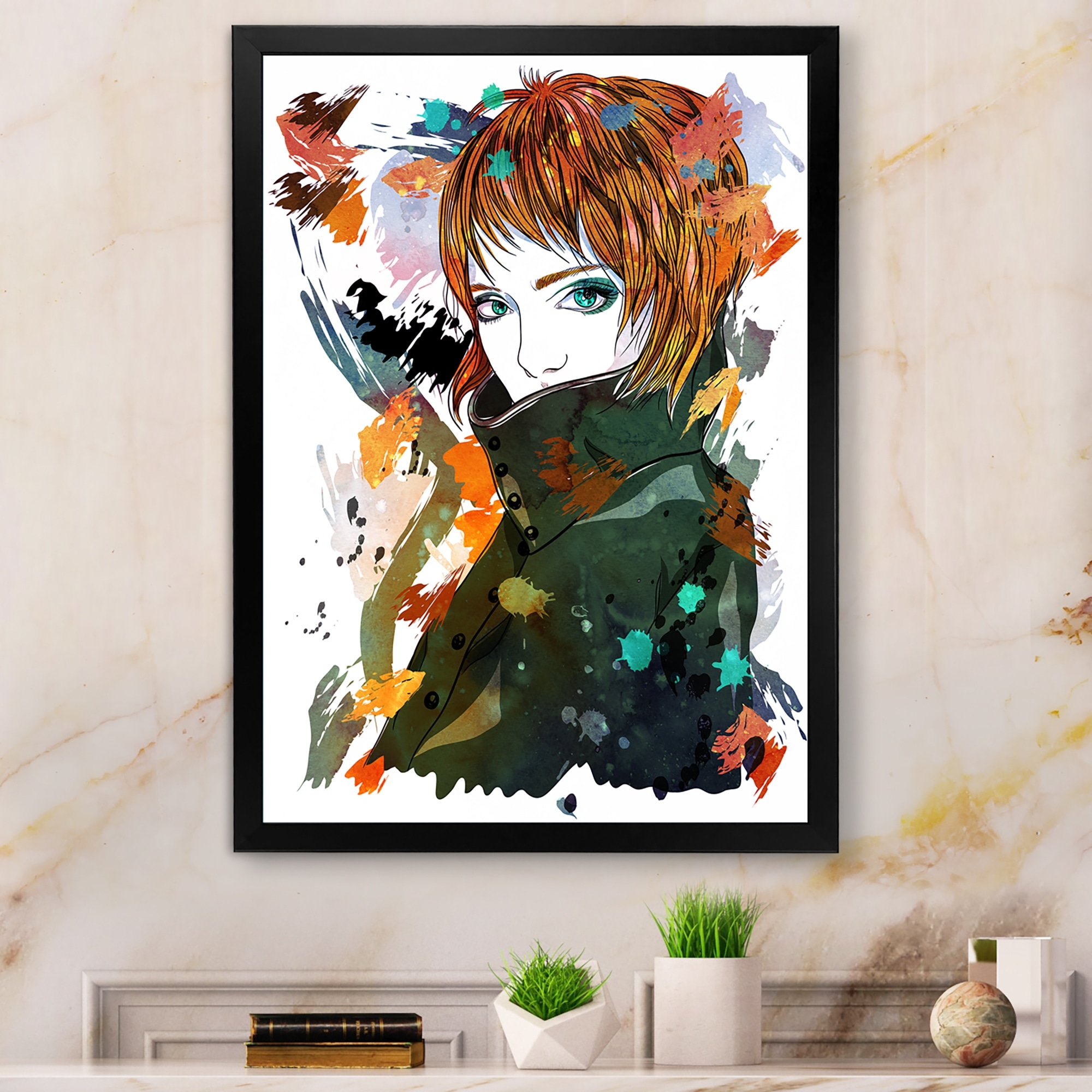 Designart "Brown Hair Girl in A Coat" Glam Framed Wall Art