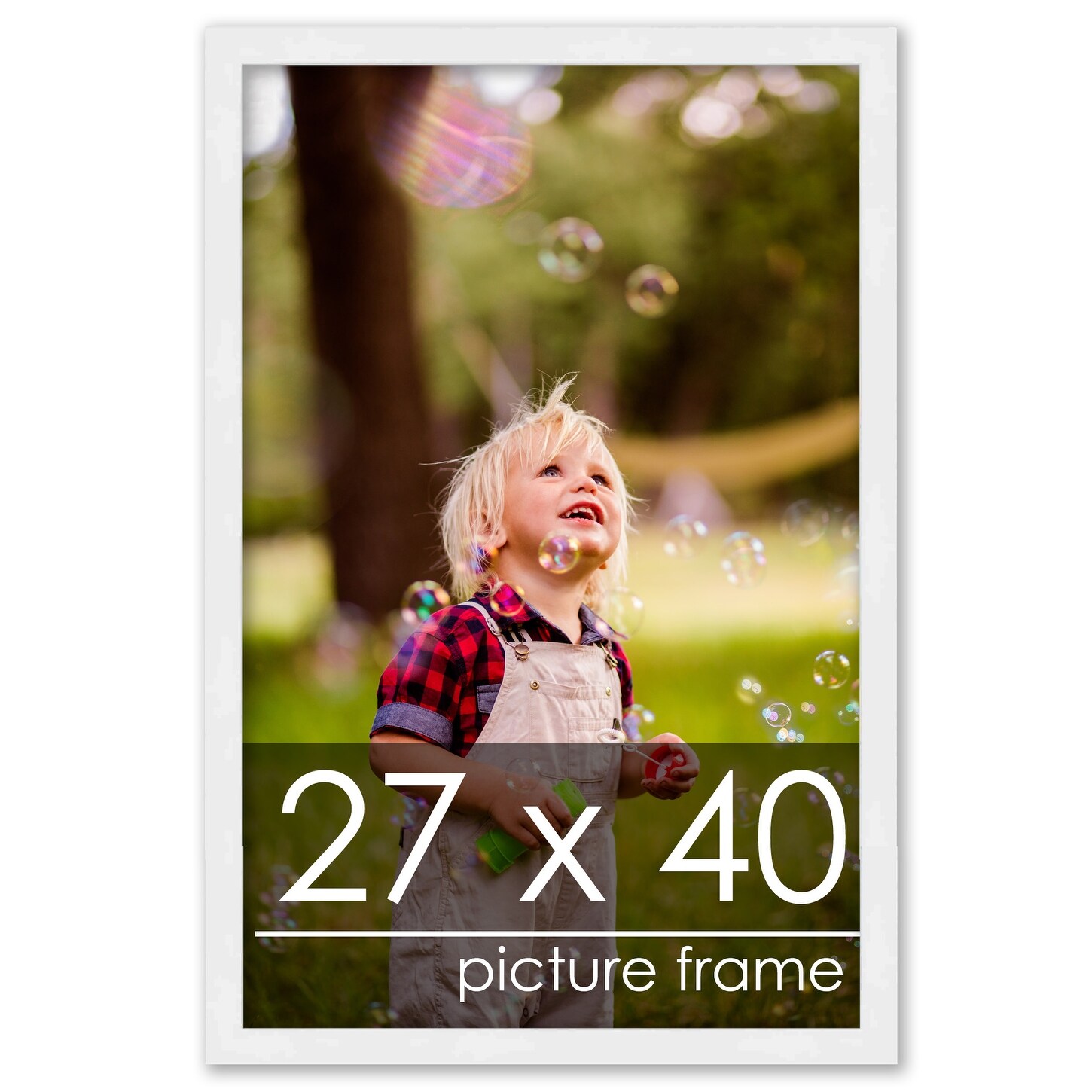 27x40 Contemporary White Wood Picture Frame - UV Acrylic, Foam Board Backing, & Hanging Hardware Included!