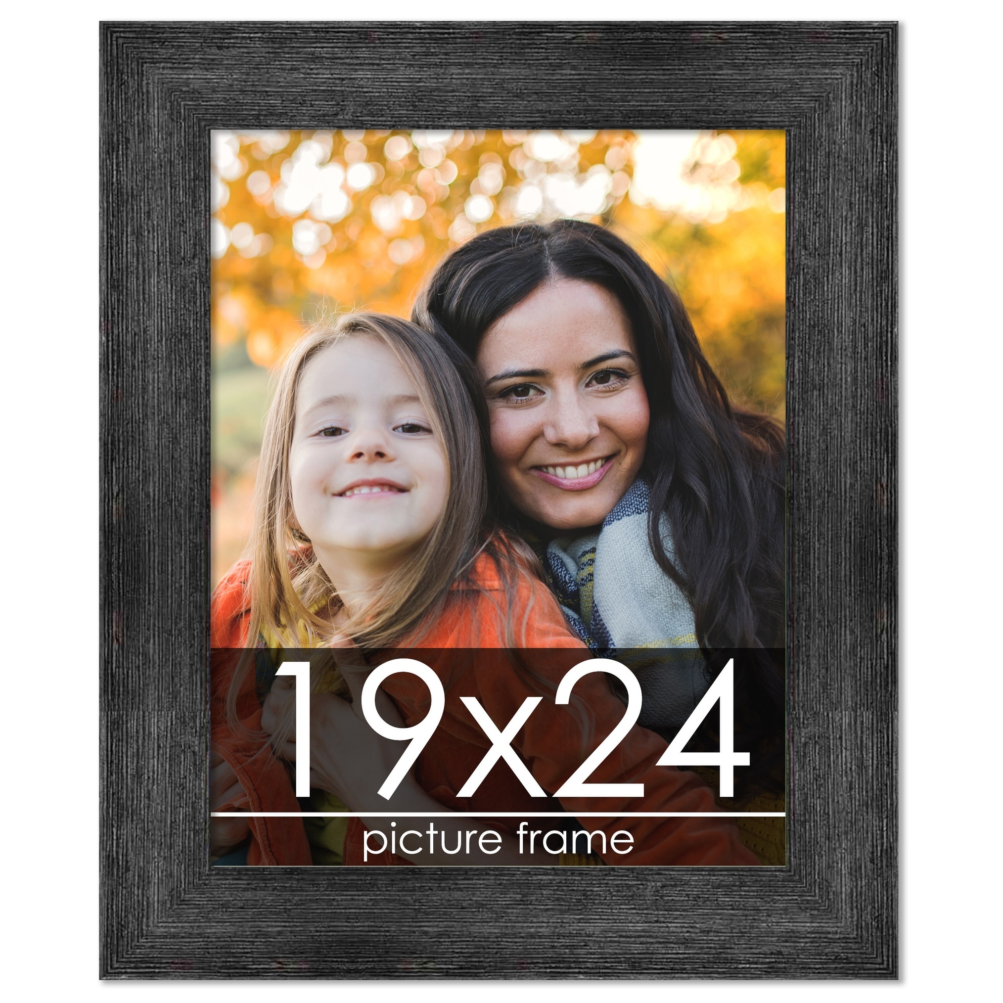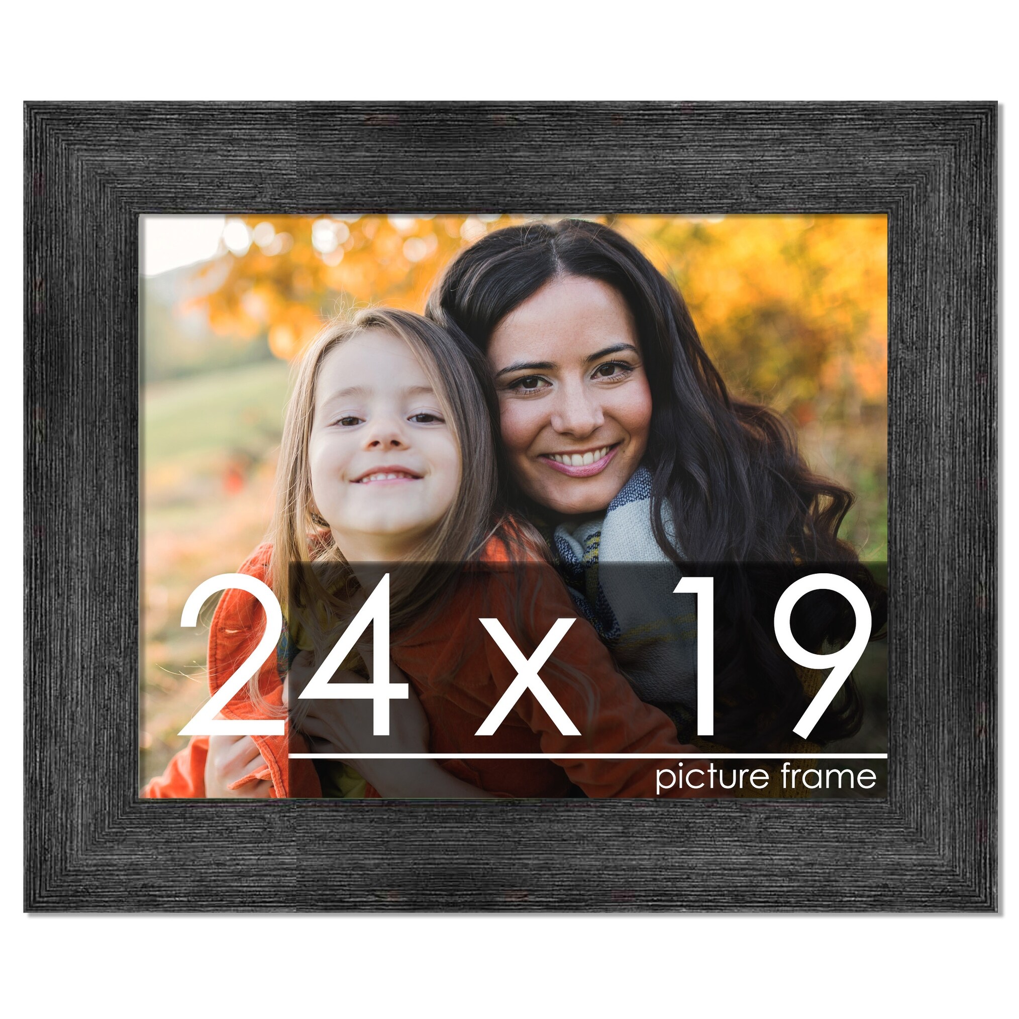 24x19 Distressed/Aged Black Wood Picture Frame - UV Acrylic, Foam Board Backing, & Hanging Hardware Included!