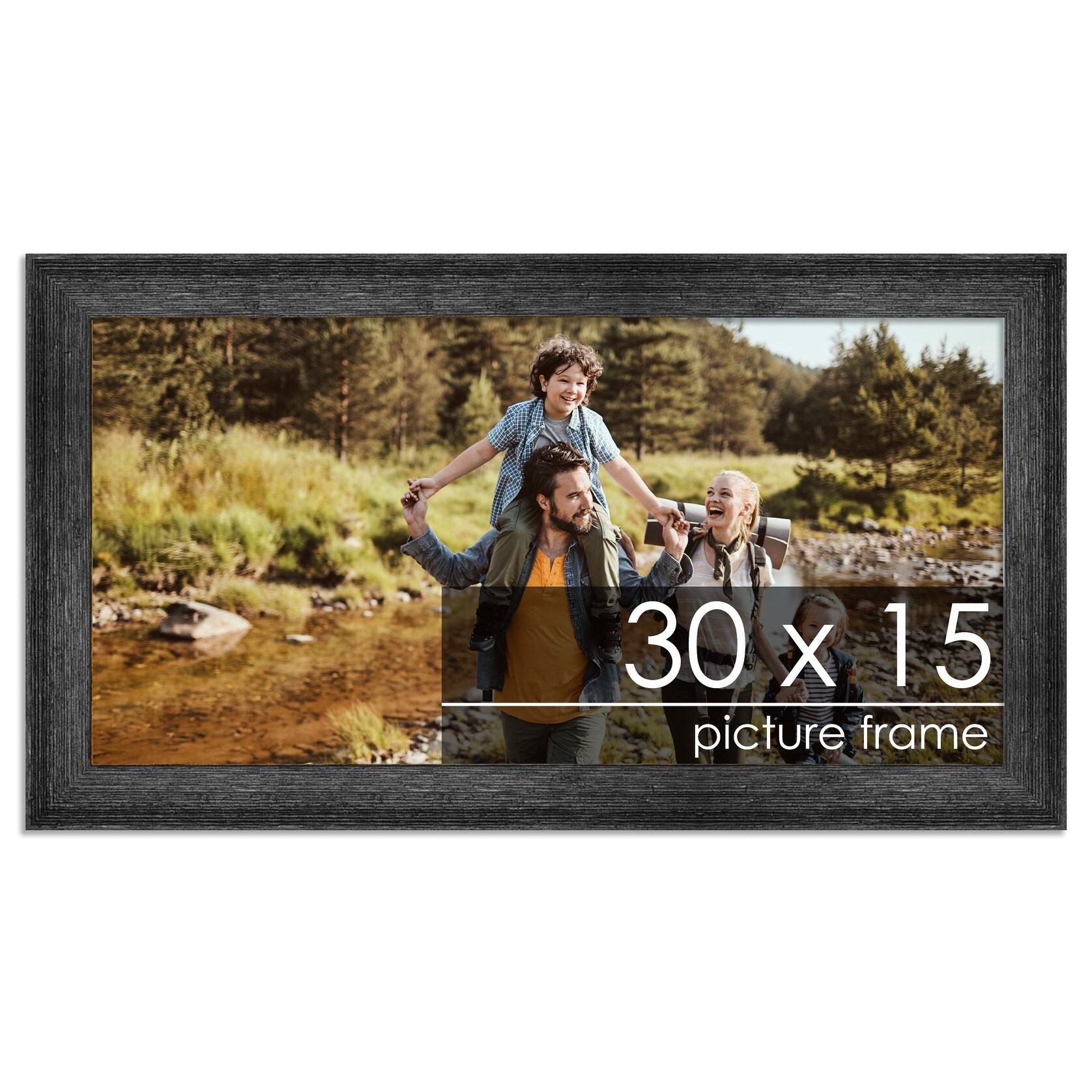 30x15 Distressed/Aged Black Wood Picture Frame - UV Acrylic, Foam Board Backing, & Hanging Hardware Included!