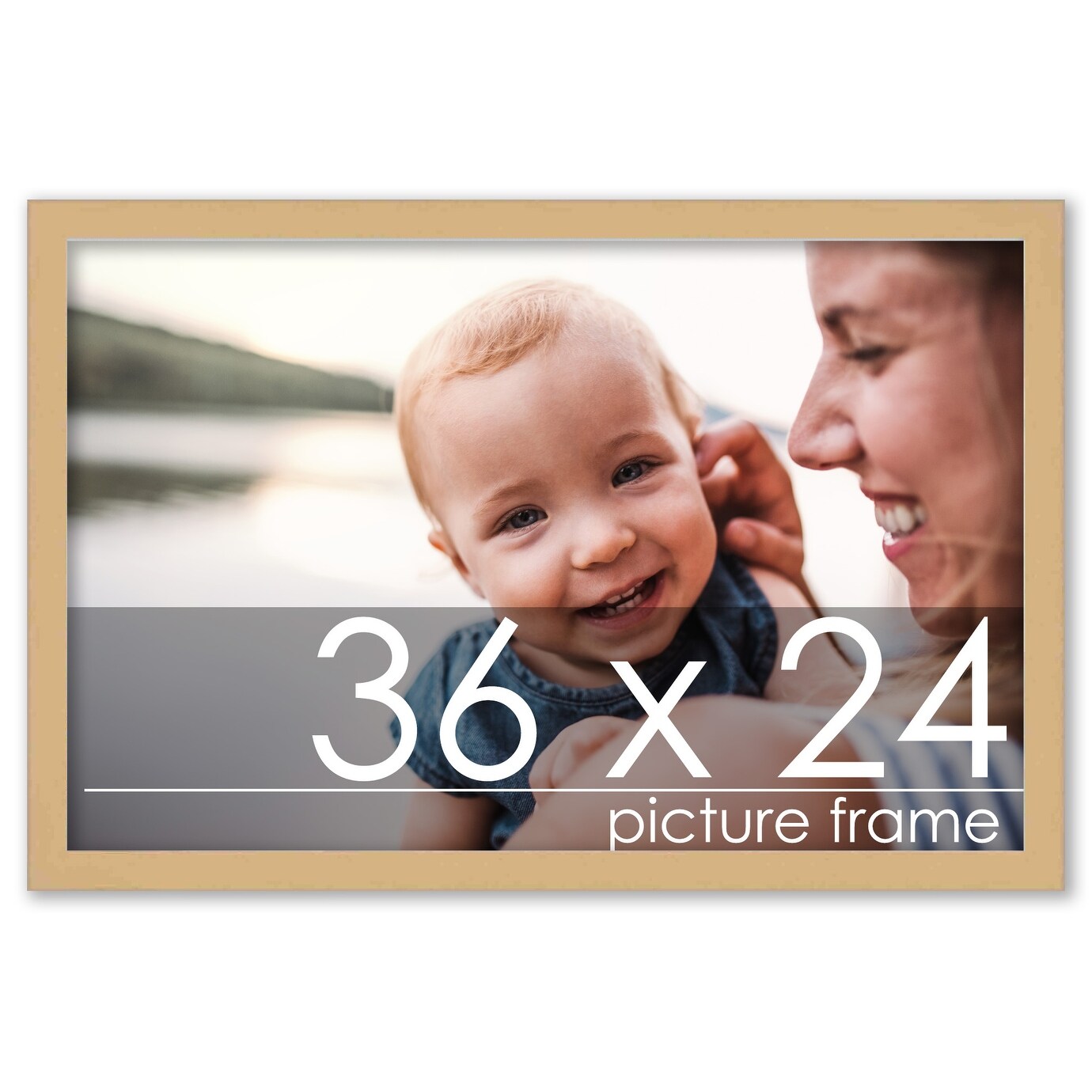 36x24 Traditional Natural Wood Picture Frame - UV Acrylic, Foam Board Backing, & Hanging Hardware Included!