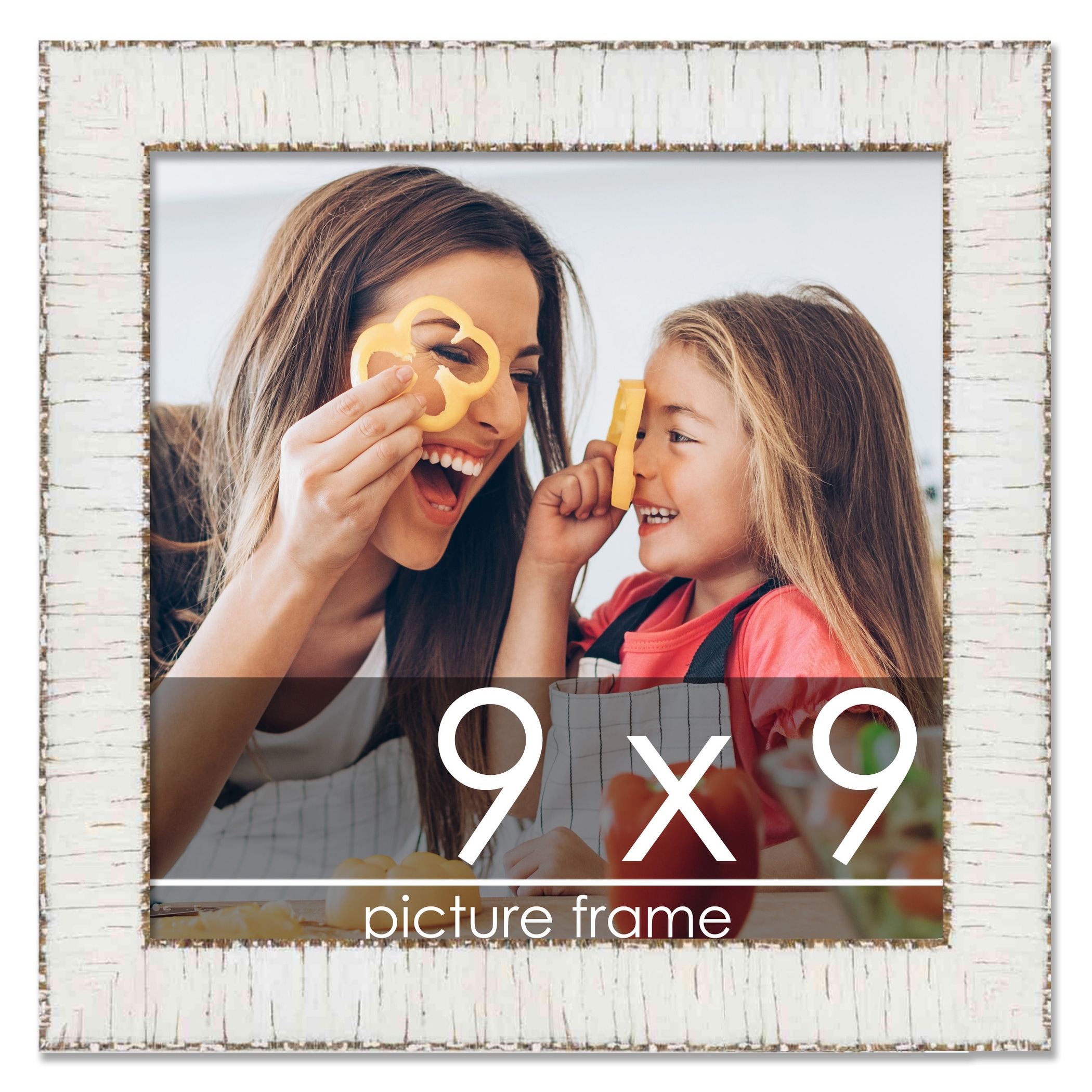 9x9 White Rustic Birch Wood Picture Square Frame - Picture Frame Includes UV Acrylic, Foam Board Backing, & Hanging Hardware!