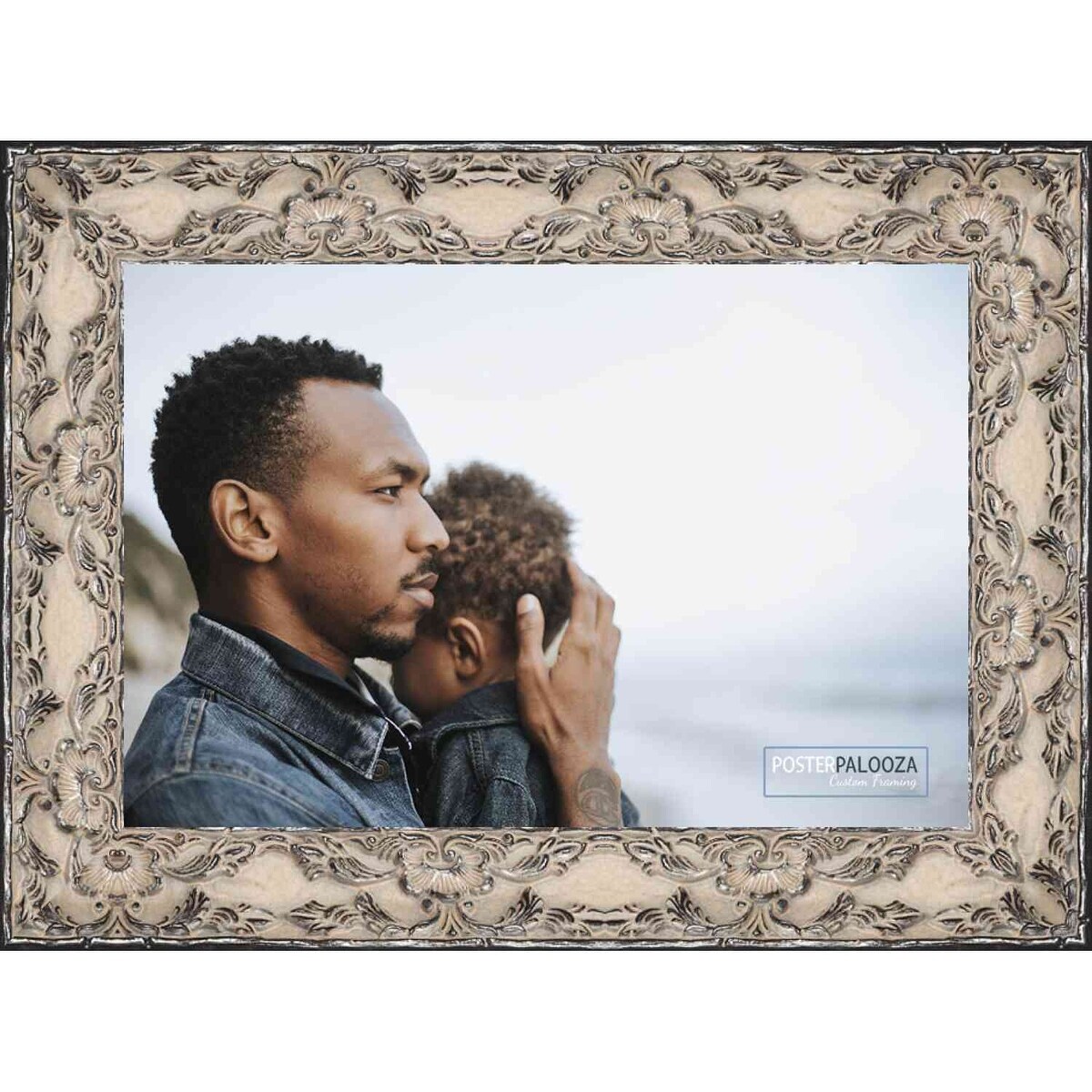 12x22 Traditional Pewter Wood Picture Frame - UV Acrylic, Foam Board Backing, & Hanging Hardware Included!