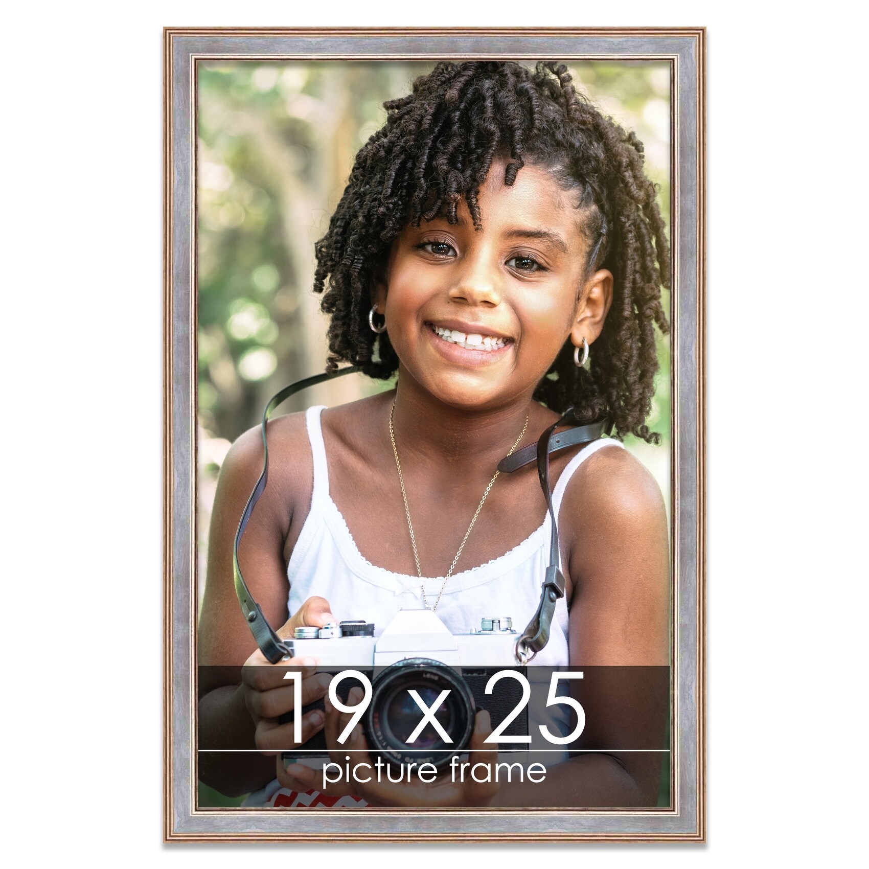 19x25 Contemporary Antique Silver Wood Picture Frame - UV Acrylic, Foam Board Backing, & Hanging Hardware Included!