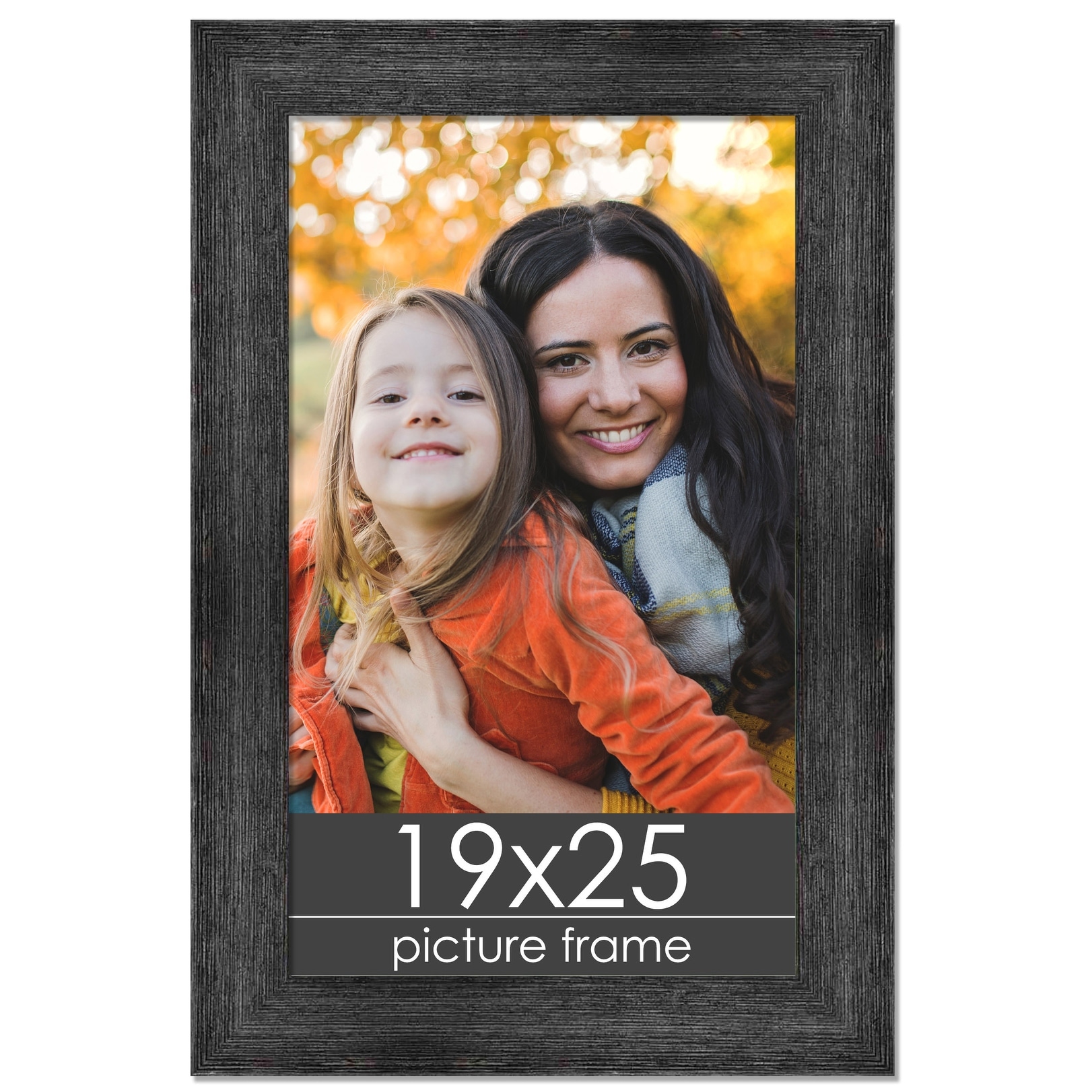 19x25 Distressed/Aged Black Wood Picture Frame - UV Acrylic, Foam Board Backing, & Hanging Hardware Included!