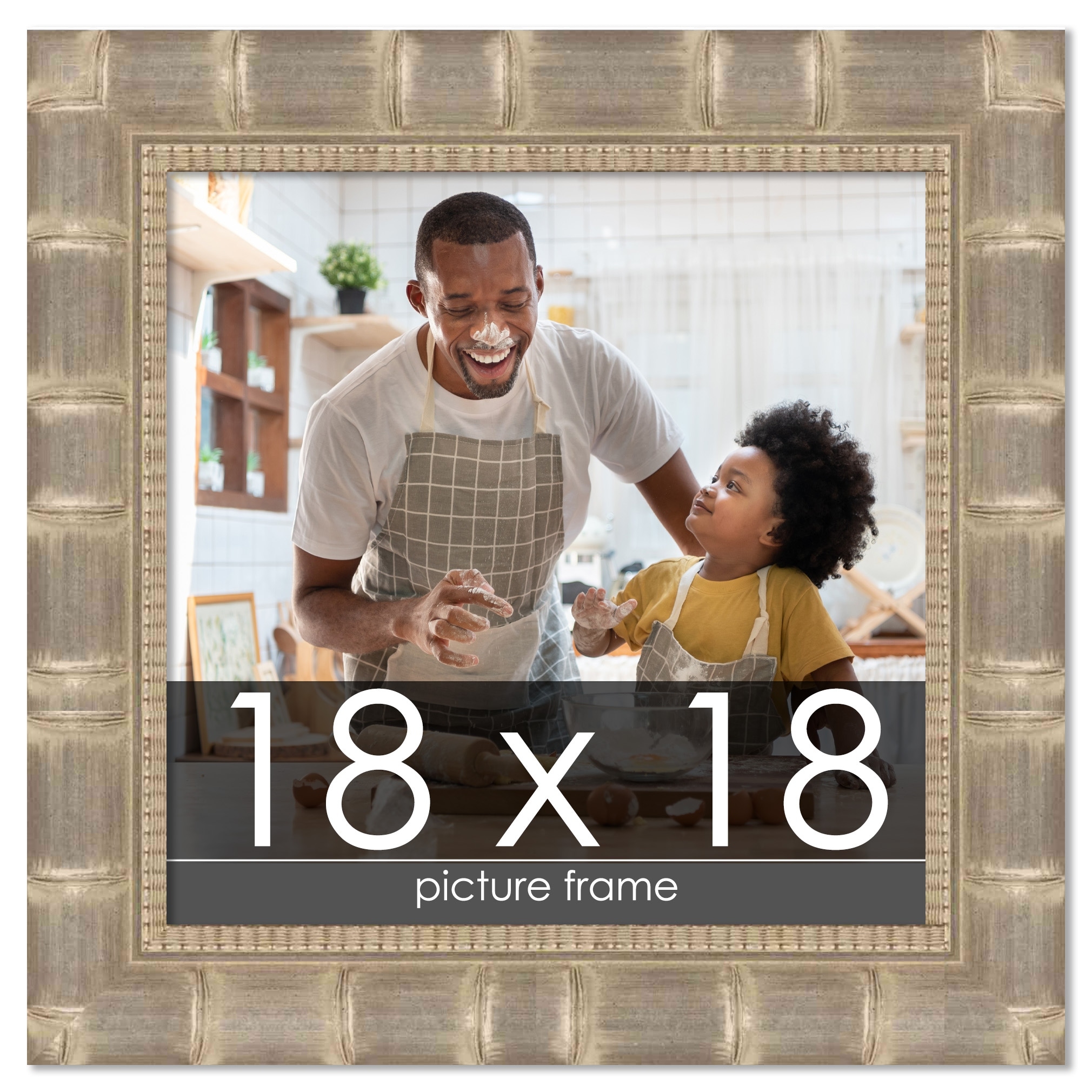 18x18 Bamboo Silver Wood Picture Square Frame - Picture Frame Includes UV Acrylic, Foam Board Backing, & Hanging Hardware!