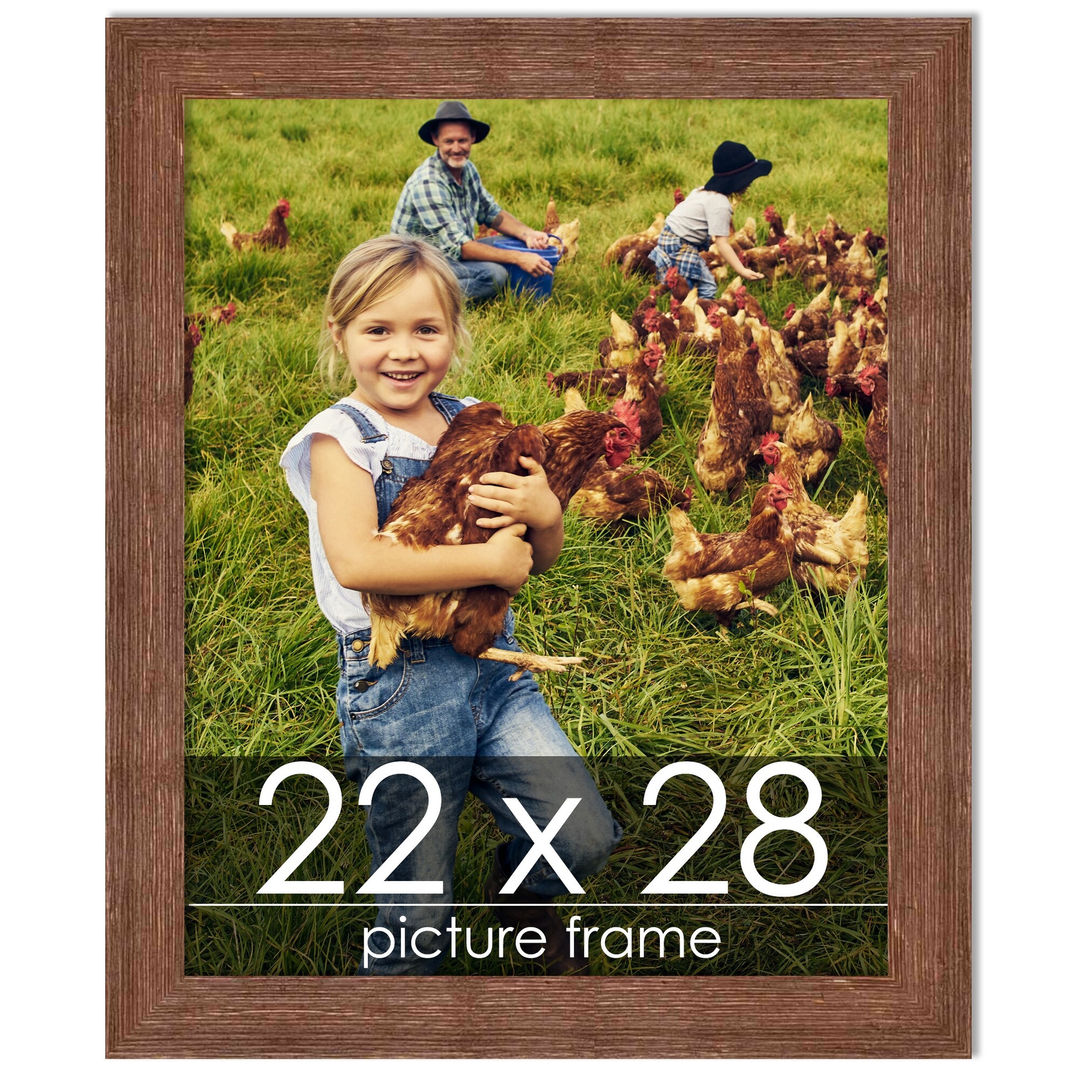 22x28 Frame Brown Barnwood Picture Frame with UV Acrylic Glass, Foam Board Backing & Hanging Hardware Included