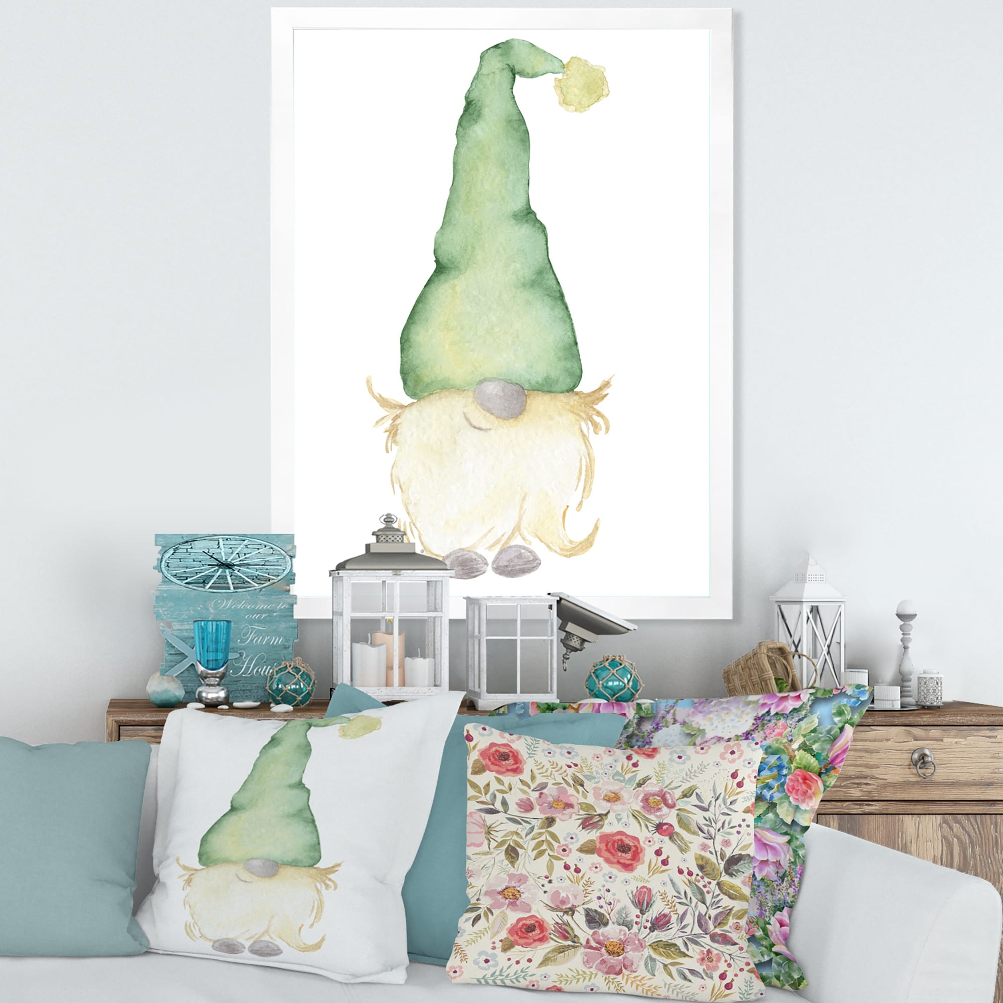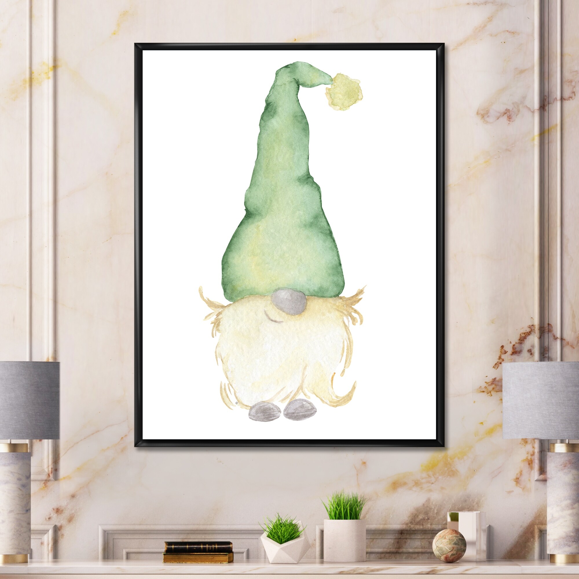 Designart "Cute Christmas Gnome in Green Hat" Traditional Framed Canvas Wall Art Print