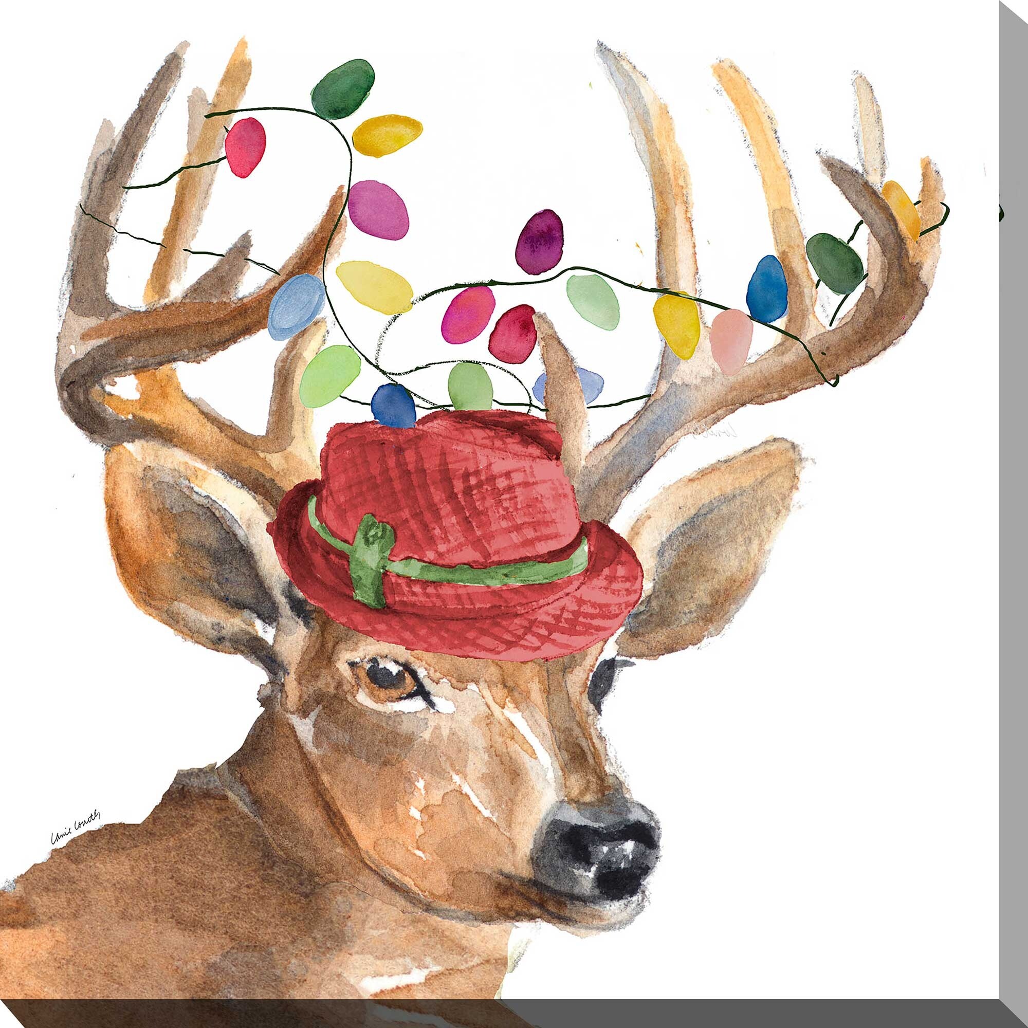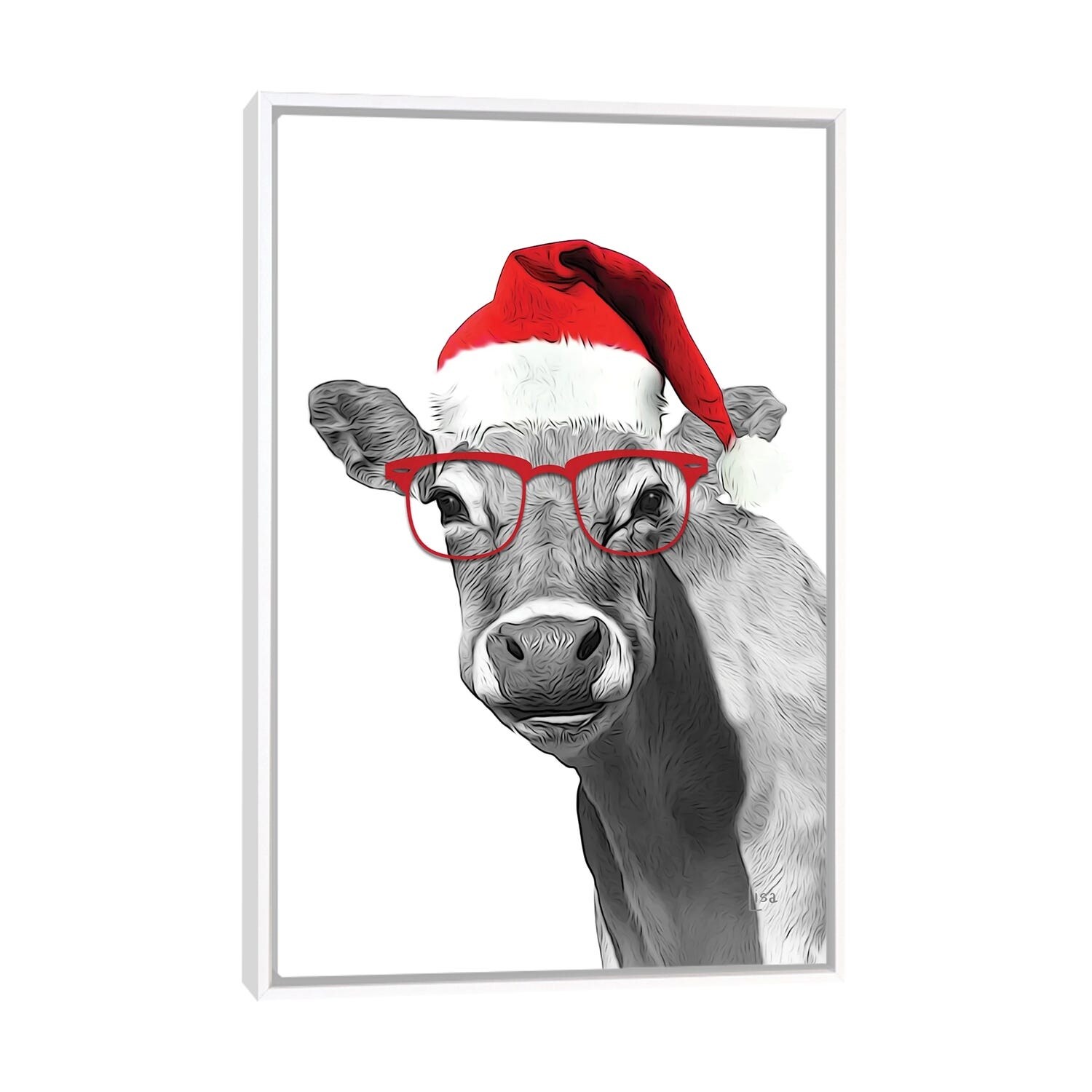 iCanvas "Christmas Cow With Glasses And Hat" by Printable Lisa's Pets Framed