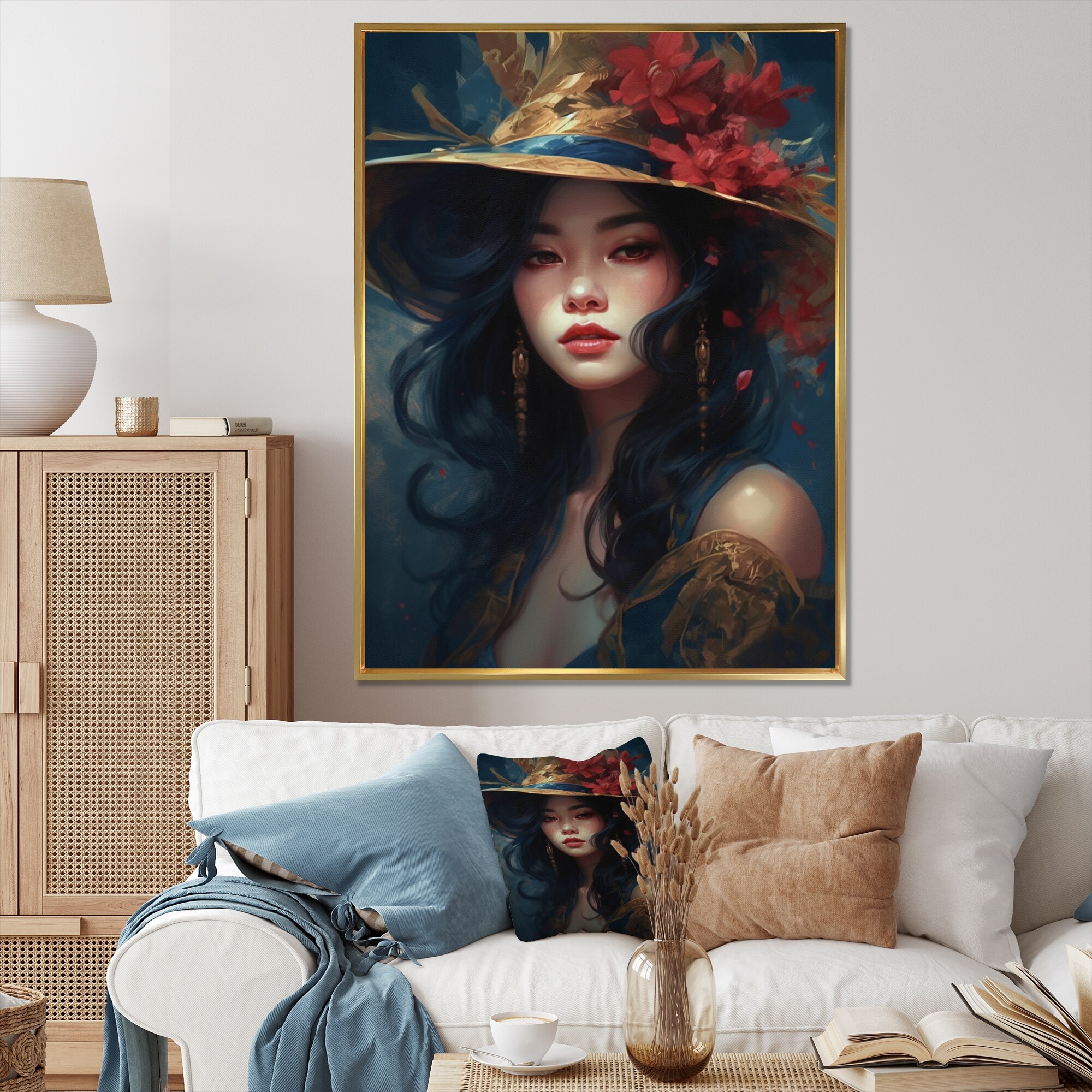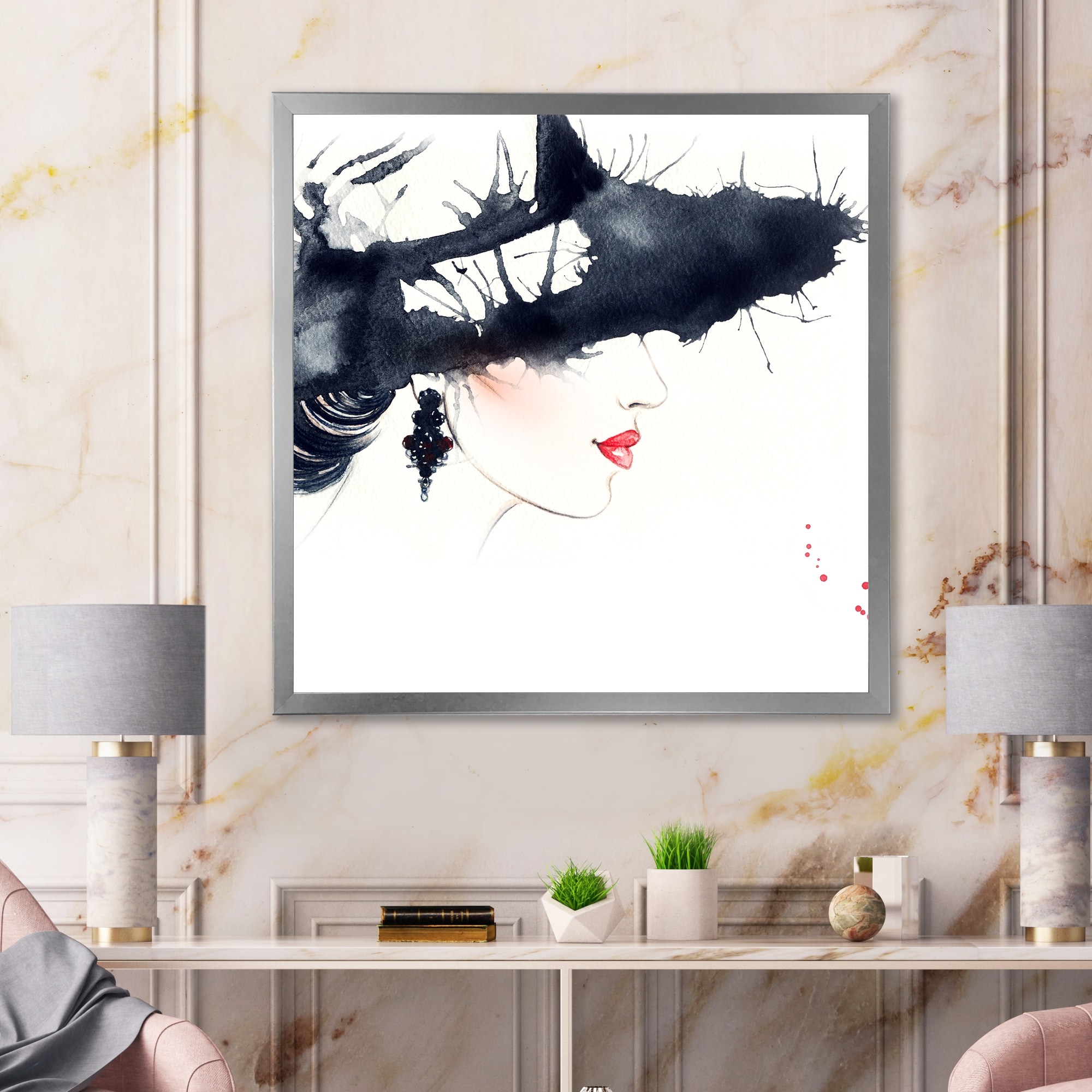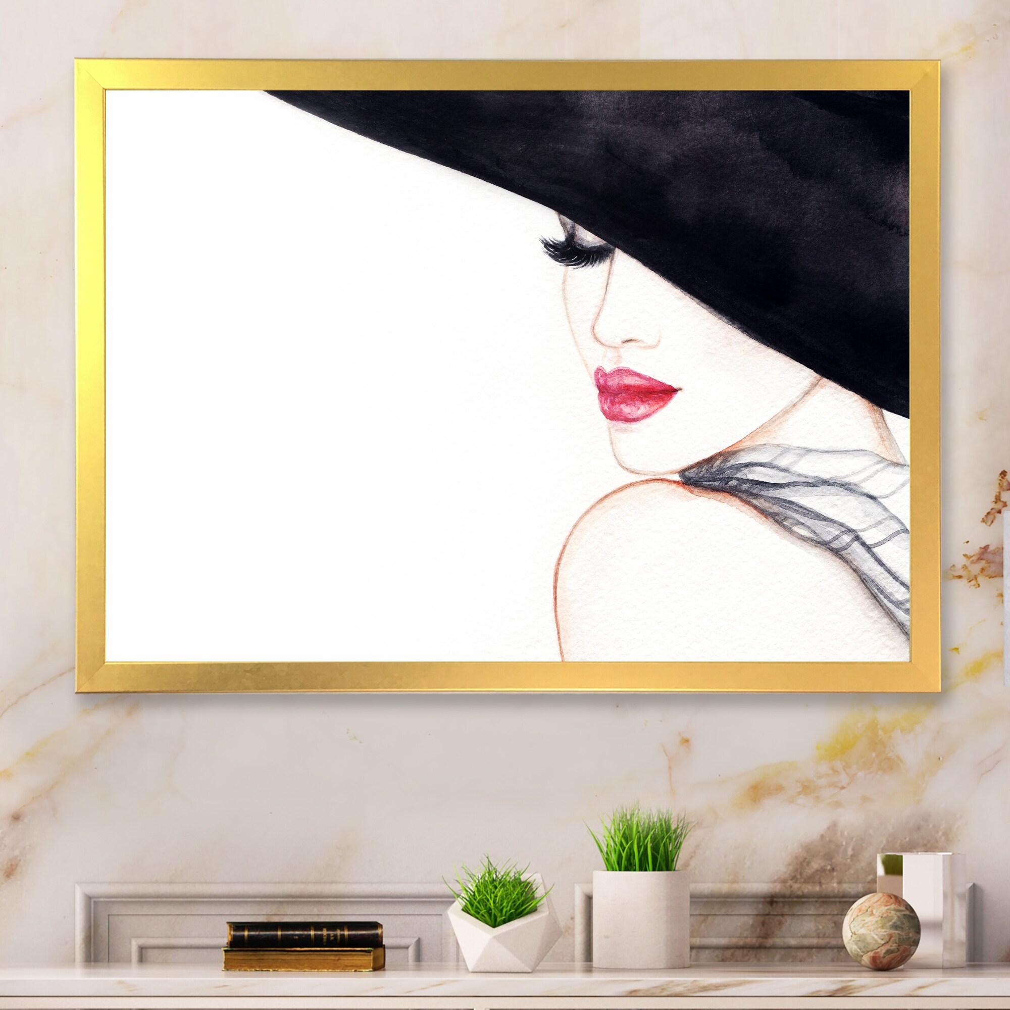 Designart "Elegant Fashion Woman With Black Hat" Glam Framed artwork
