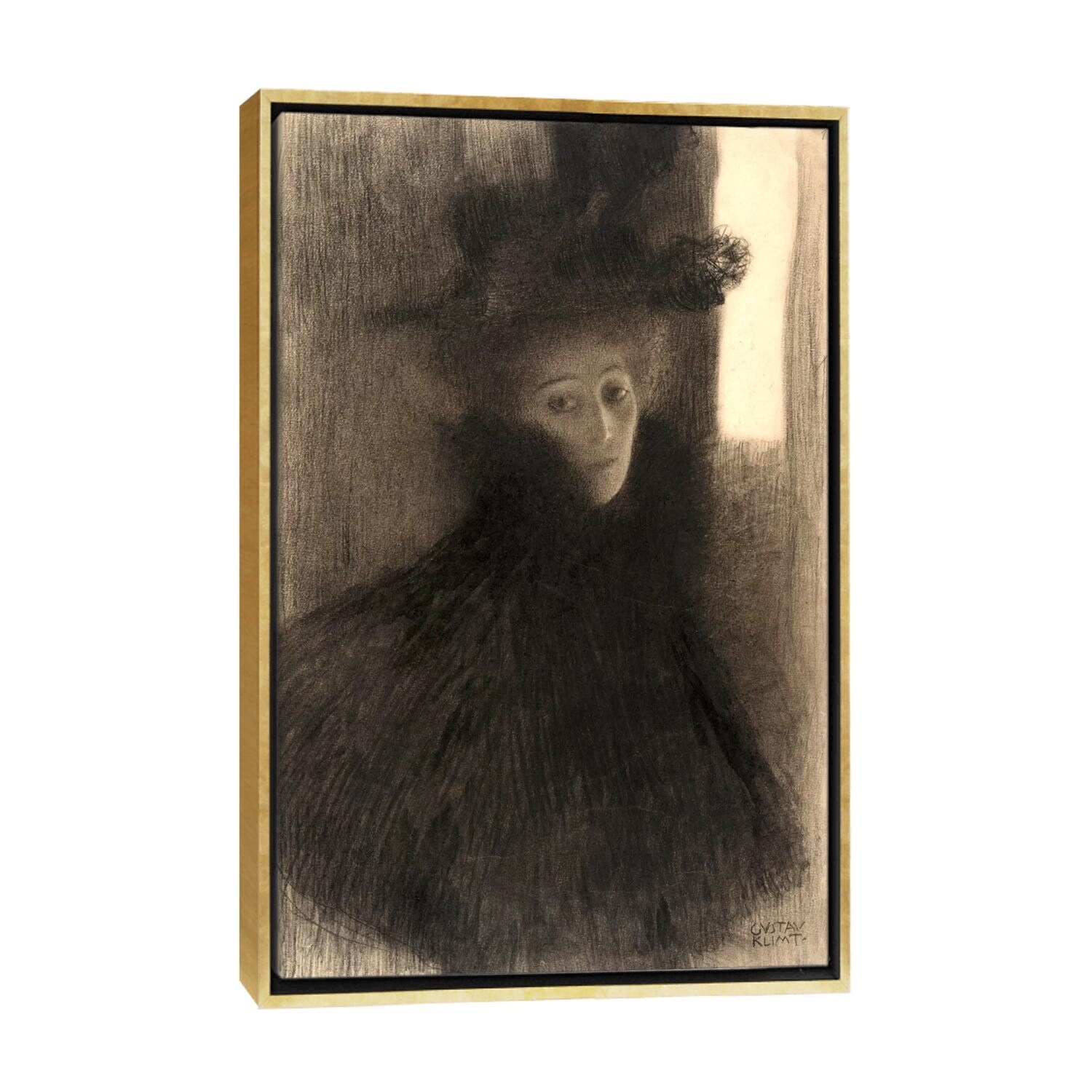 iCanvas "Portrait of a Lady with Cape and Hat" by Gustav Klimt Framed Canvas Print