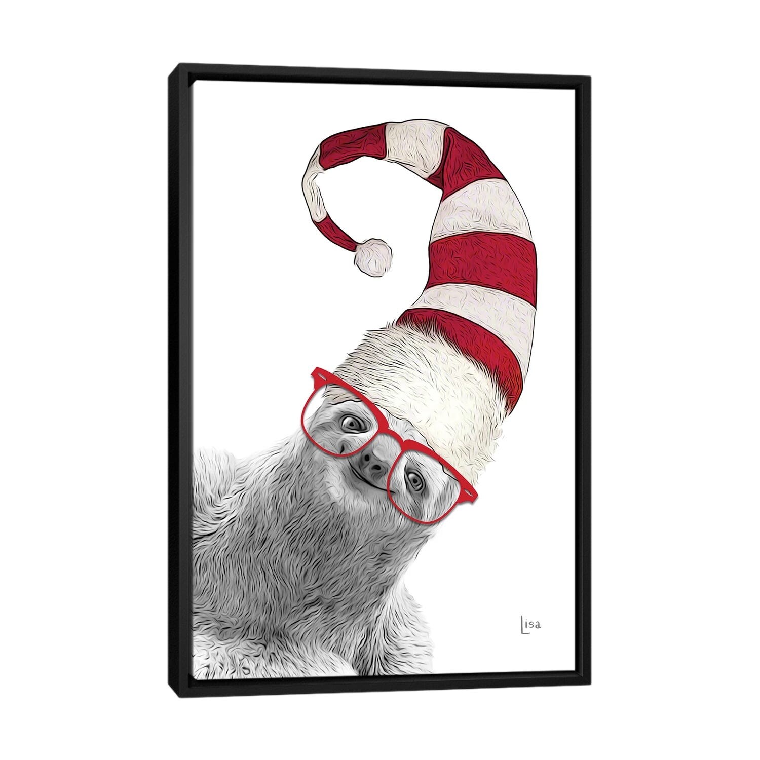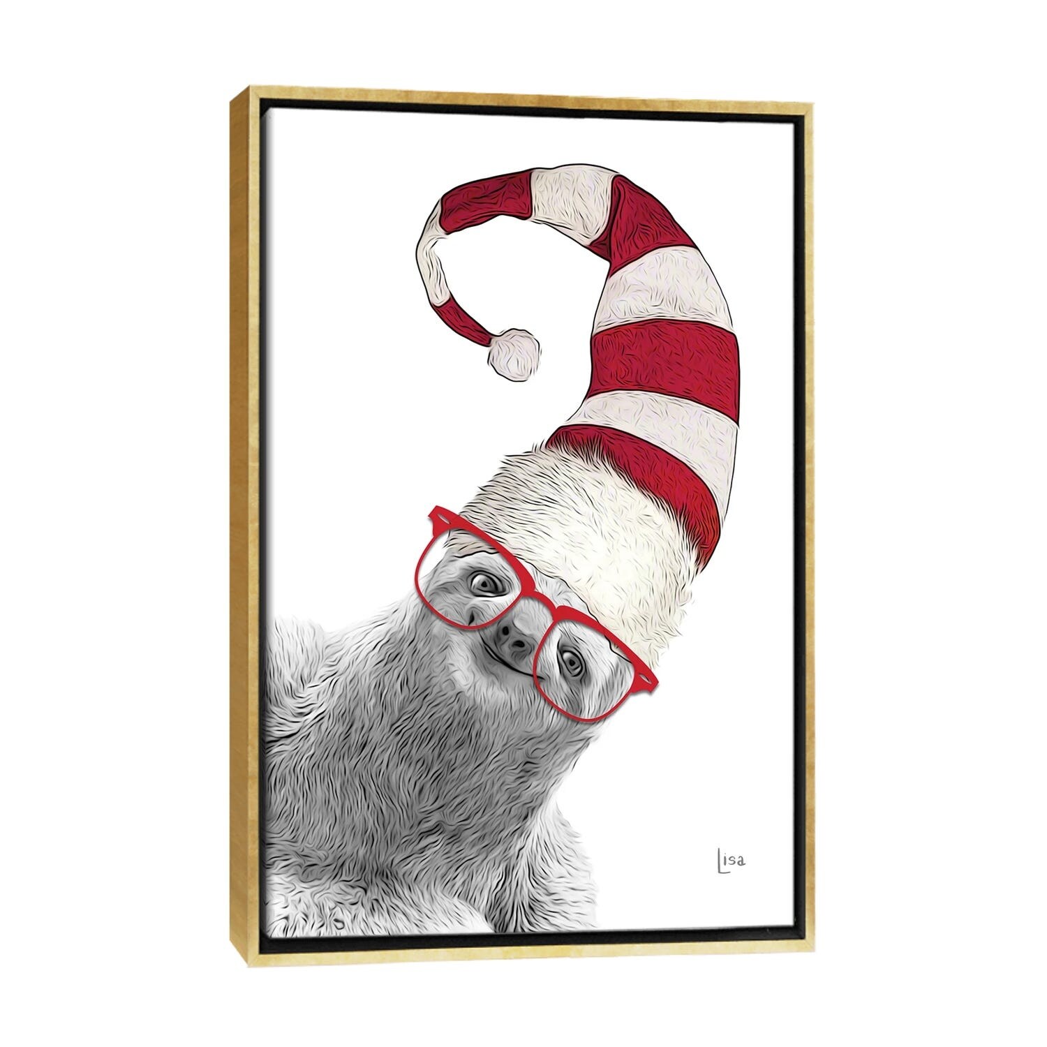 iCanvas "Christmas Sloth With Glasses And Hat" by Printable Lisa's Pets Framed