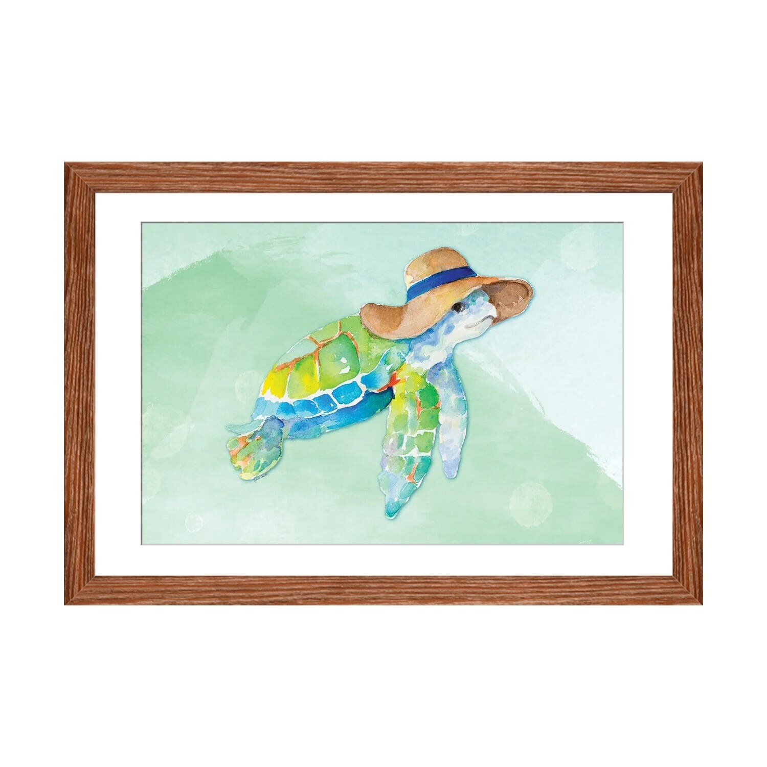 iCanvas "Turtle With Hat on Watercolor" by Lanie Loreth Framed