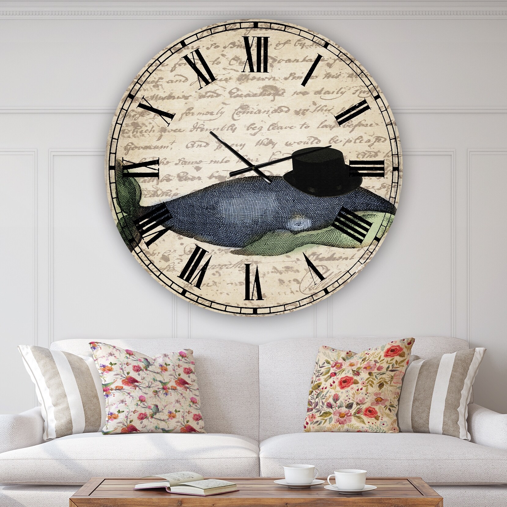 Designart 'Old Style Whale With Hat' Nautical & Coastal Wall Clock