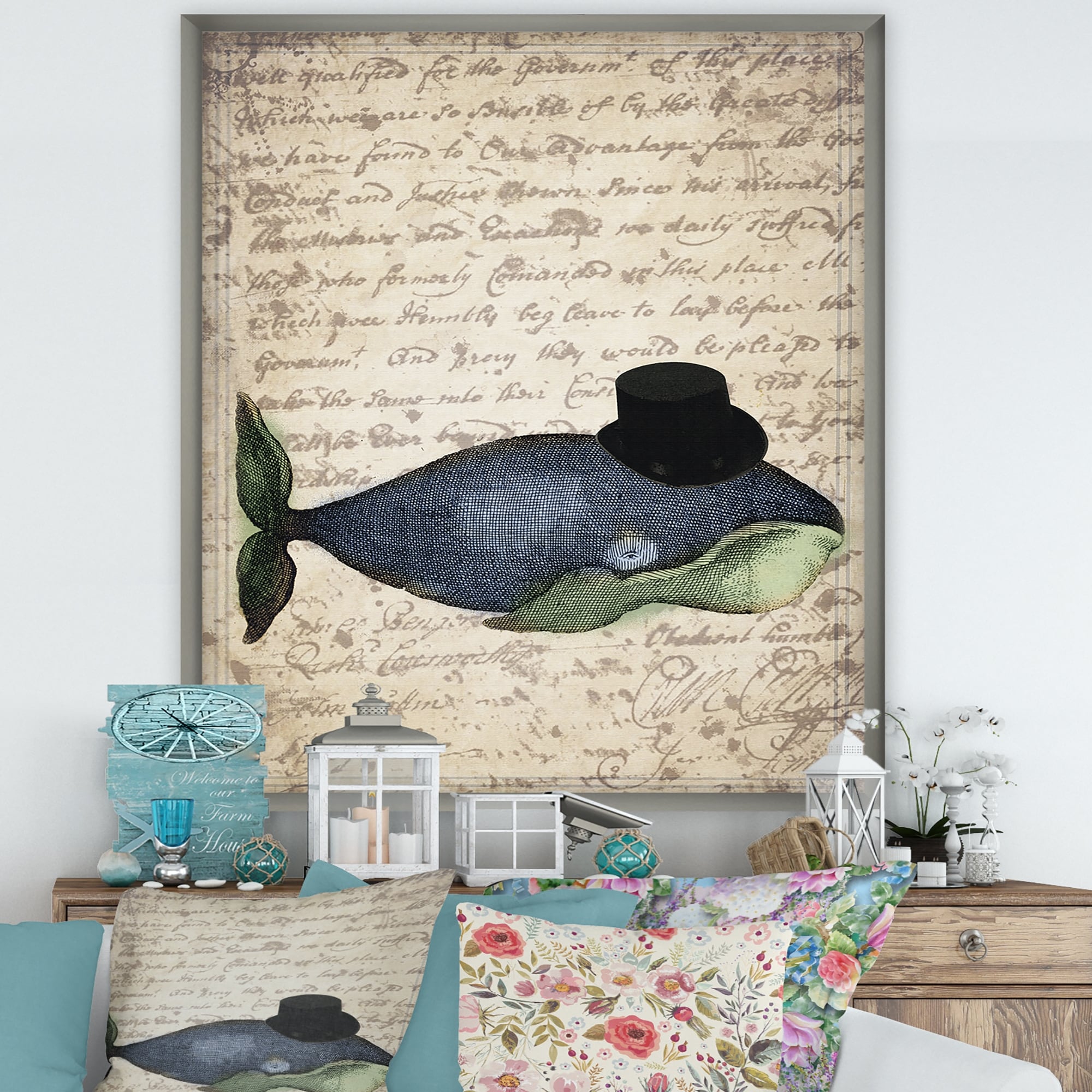 Designart "Old Style Whale With Hat" Nautical & Coastal Framed Art Print