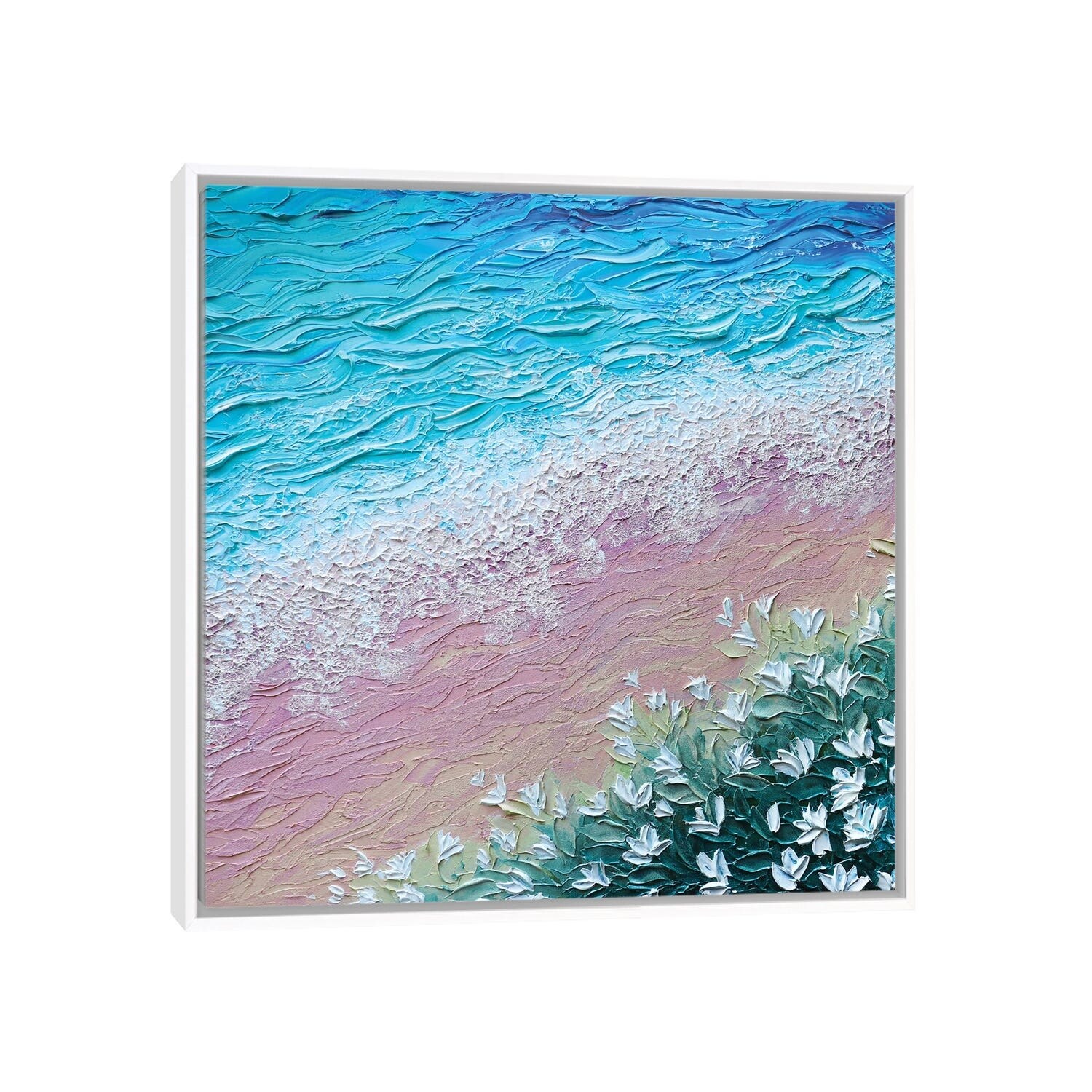 iCanvas "Pink Sand Haven - Blue Pink Peach Green" by Nada Khatib Framed Canvas Print