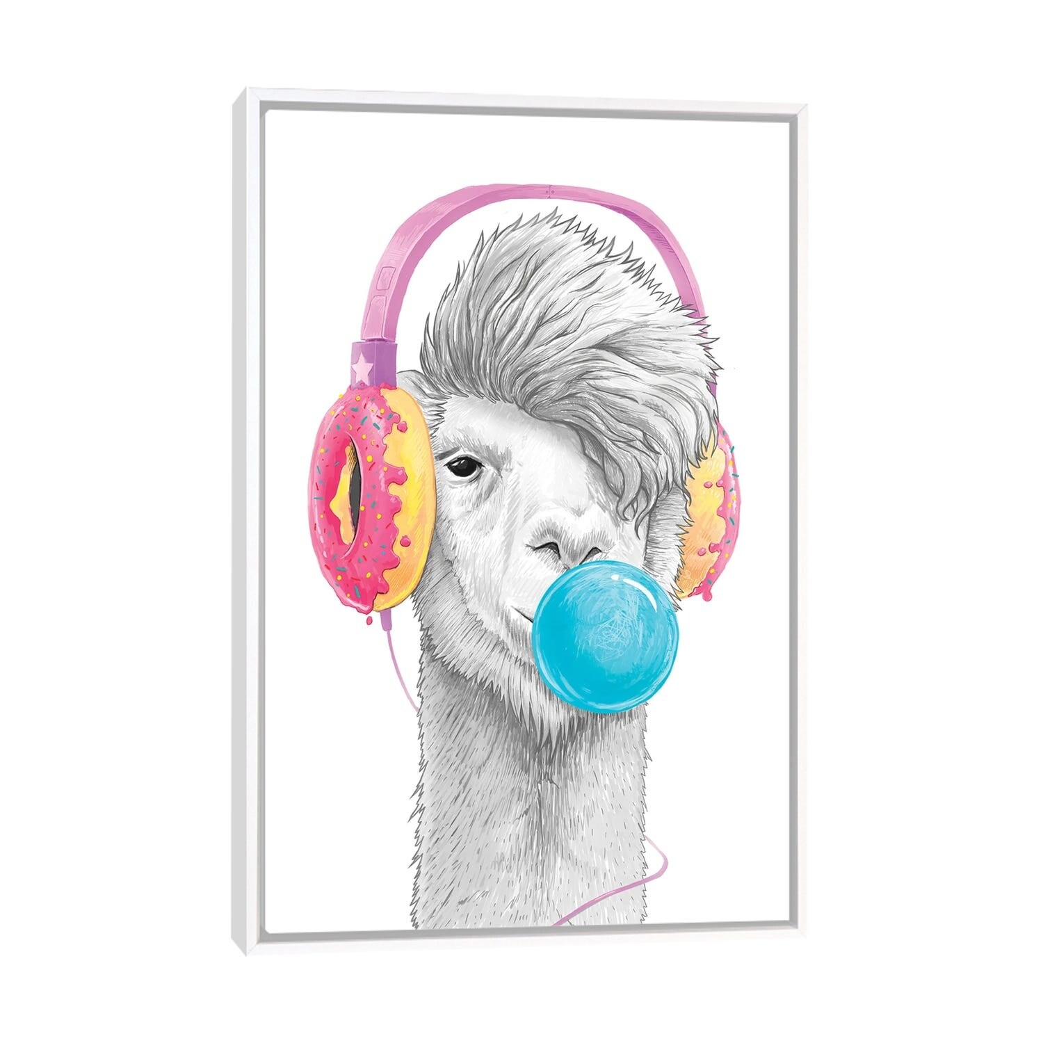 iCanvas "Llama In the Headphones" by Nikita Korenkov Framed Canvas Print